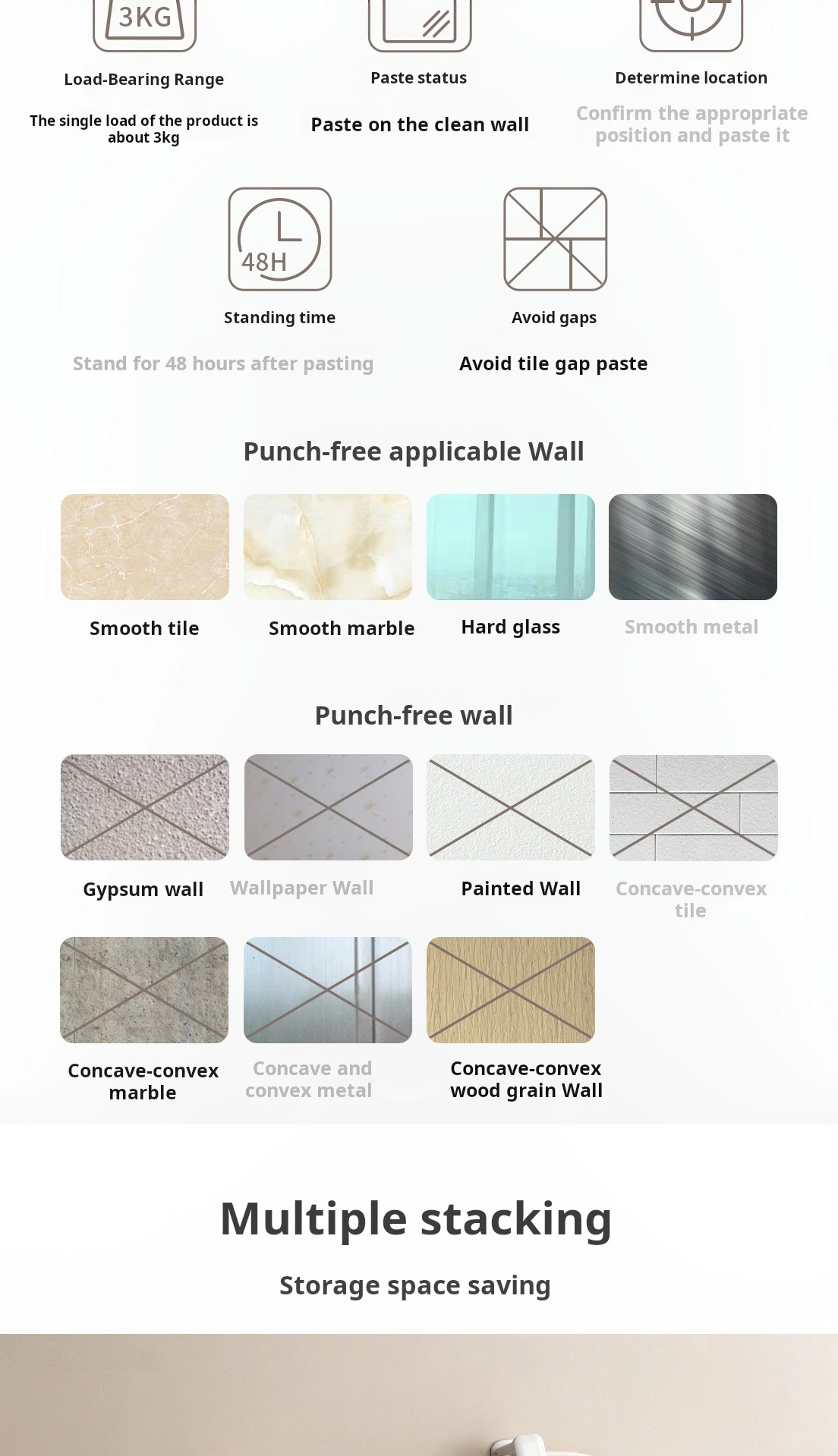 • Polyvalent :Il peut être utilisé pour accrocher divers objets, tels que des serviettes, des parfums, etc., rendant votre salle de bain plus fonctionnelle.
