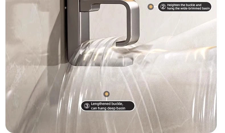 5.Conception réglable : Le crochet peut être ajusté selon la taille du lavabo, adapté aux lavabos et aux vasques pour bébés et autres.