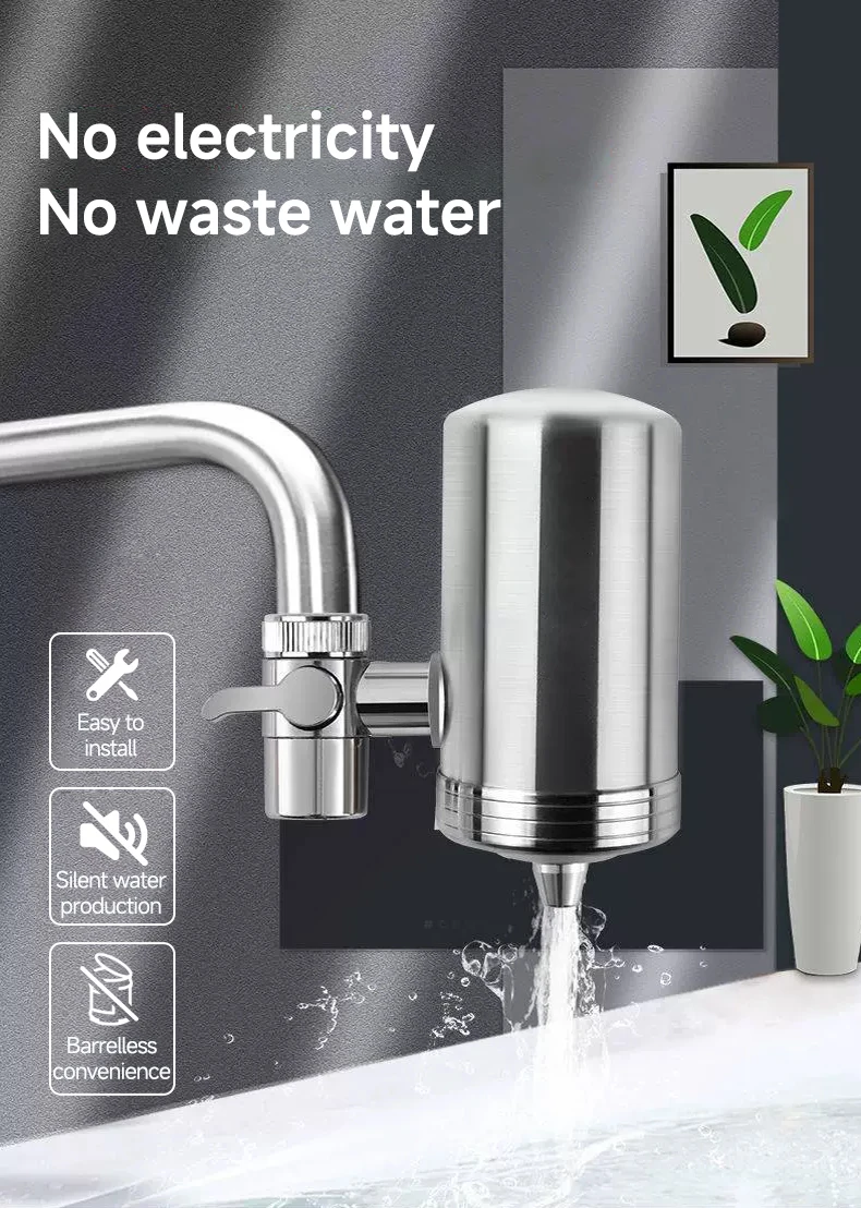 Matériau: Acier inoxydableFabriqué en acier inoxydable durable, ce filtre à eau pour robinet est conçu pour durer et résister à la rouille et à la corrosion.