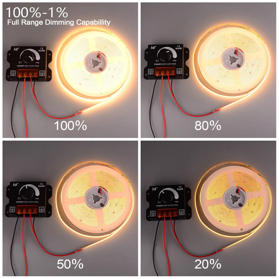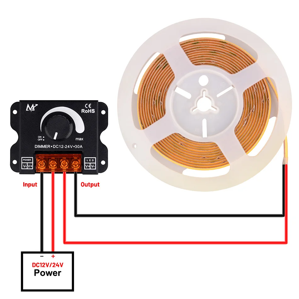 Variateur LED DC12V-24V, contrôle de panneau tactile 12A 30A, régulateur de tension réglable pour gradateurs de bande LED