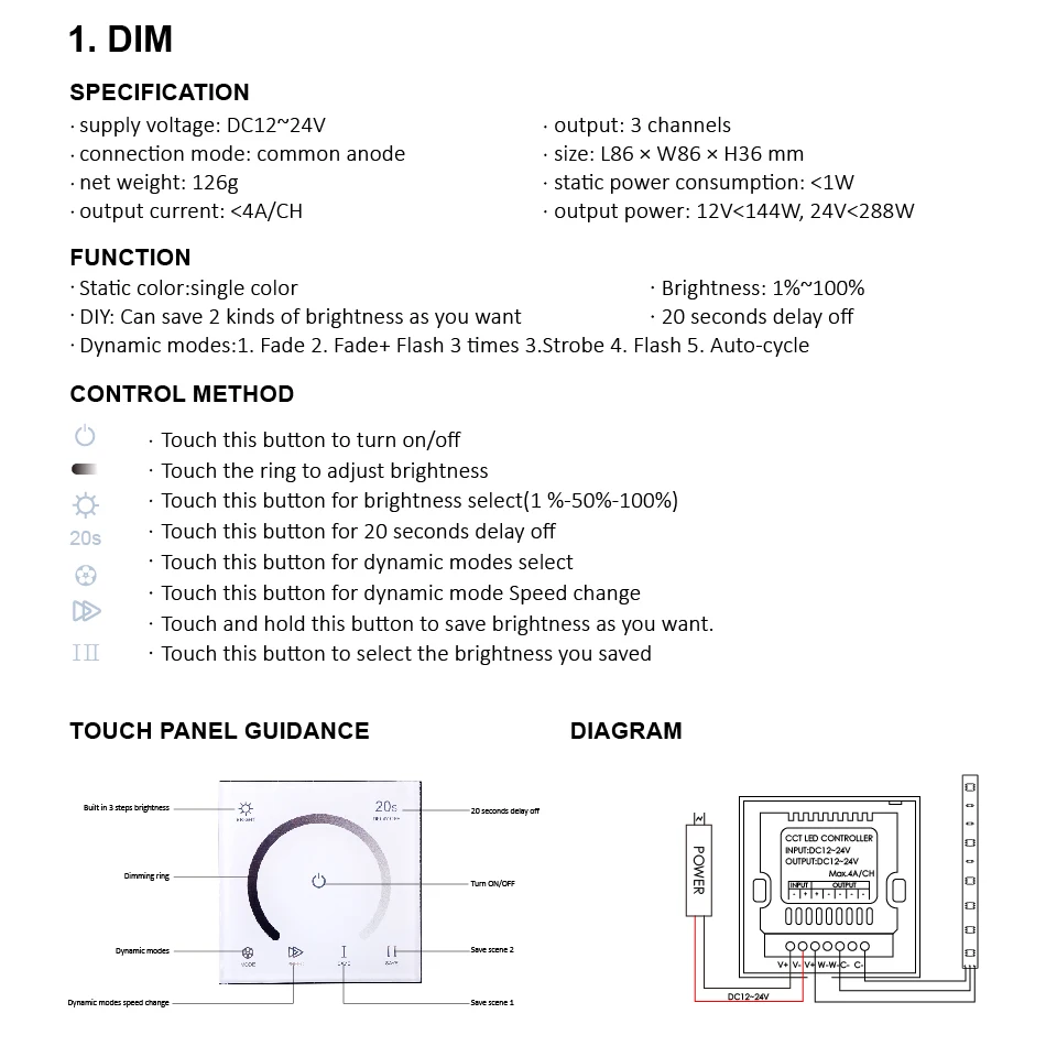 6.Principalement utilisé pour ajuster les lampes LED monochromes et la bande LED.