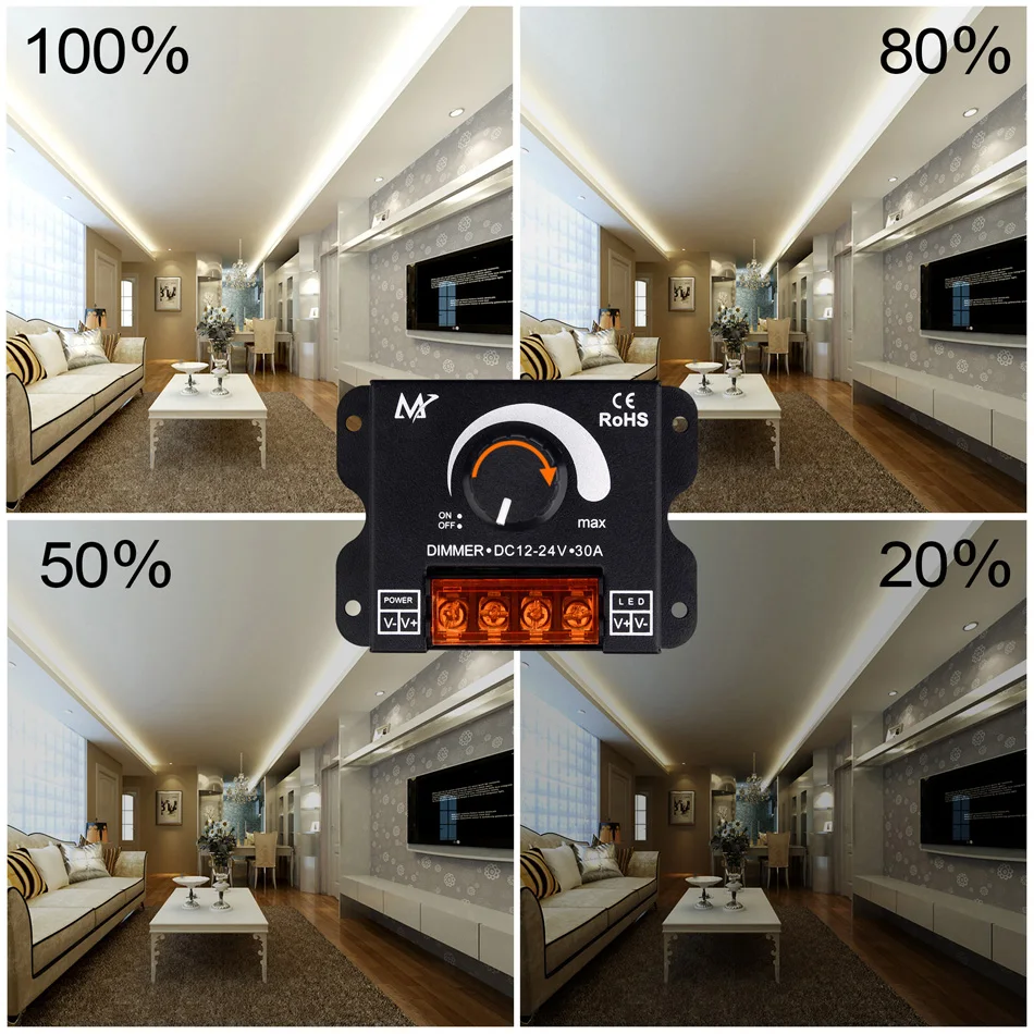 Variateur LED DC12V-24V, contrôle de panneau tactile 12A 30A, régulateur de tension réglable pour gradateurs de bande LED