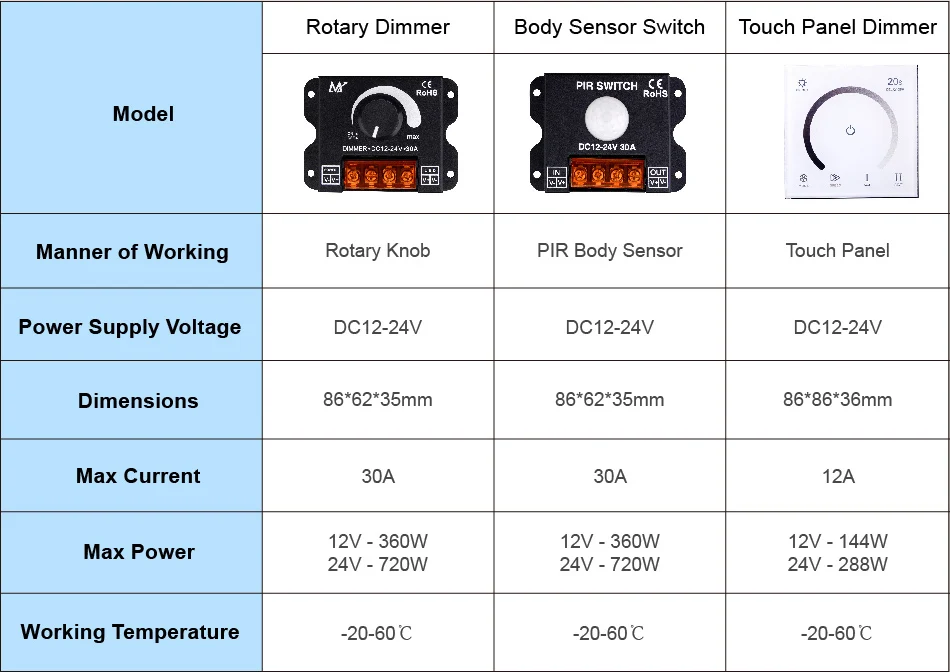 6.Utilisation principalement pour ajuster les lampes LED monochromes et la bande LED.
