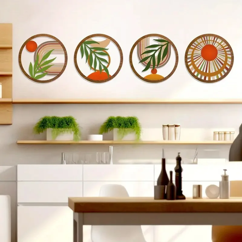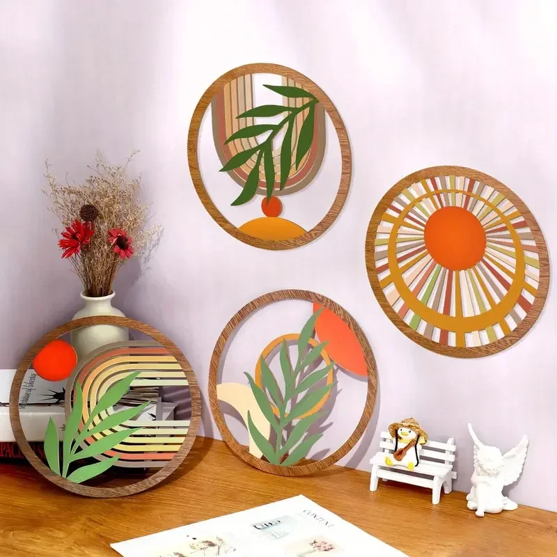Décorations murales bohème en bois, 4 pièces, Design creux suspendu pour salon, chambre à coucher, cour, pièces décoratives uniques