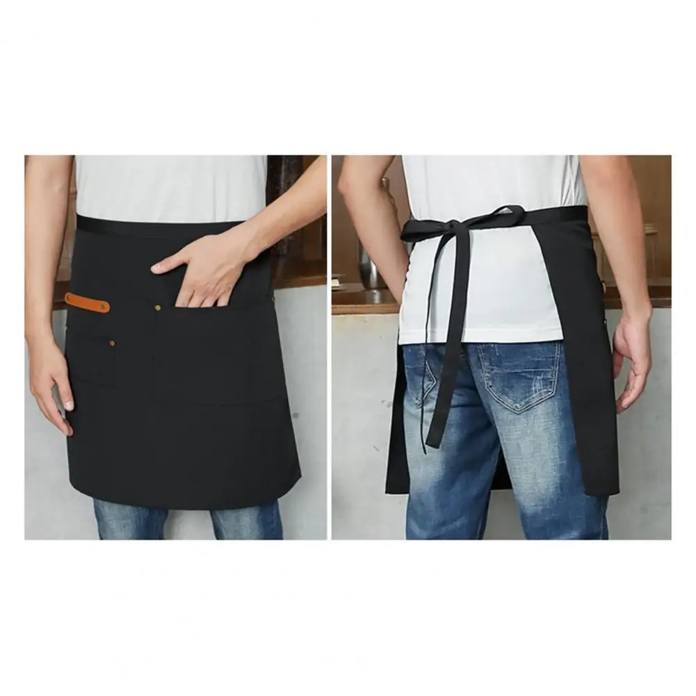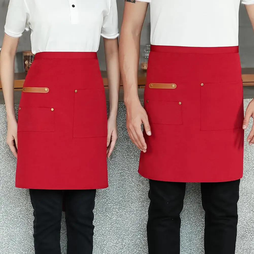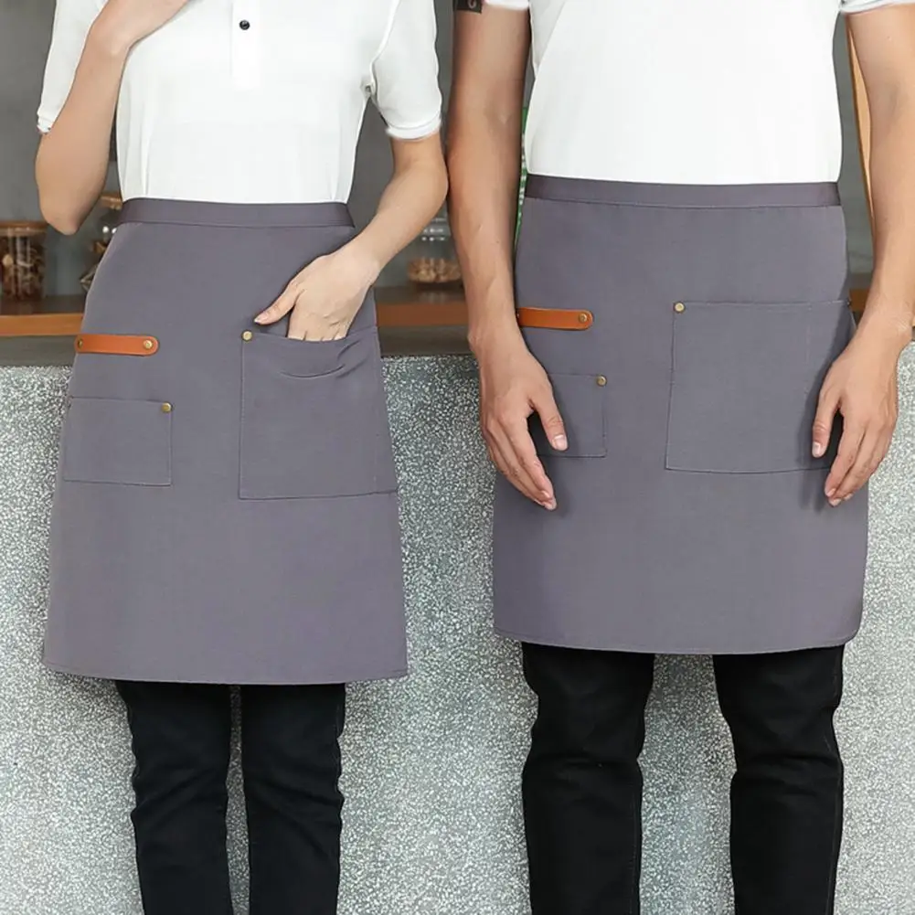 Demi-tablier avec poches, tablier en tissu imperméable pour serveur Chef, tablier de serveur de cuisine de couleur unie résistant aux taches pour hommes et femmes