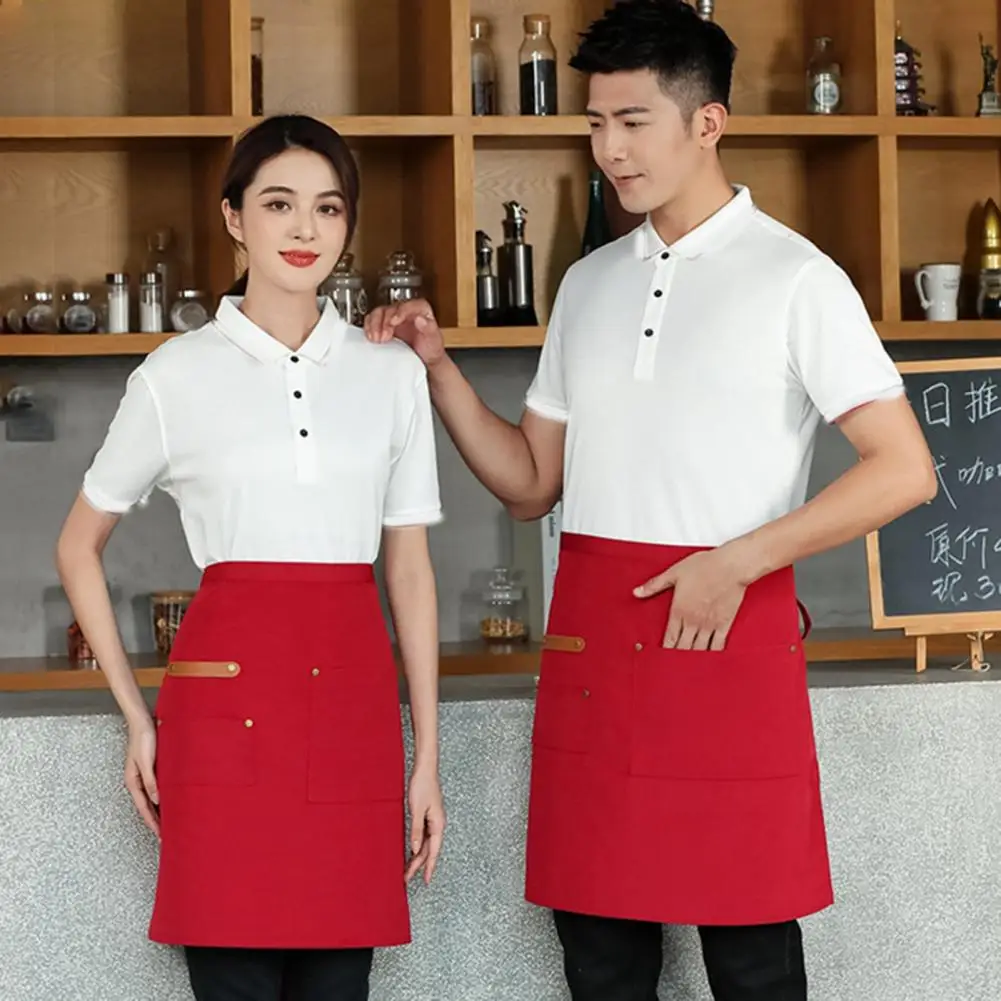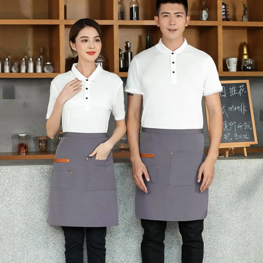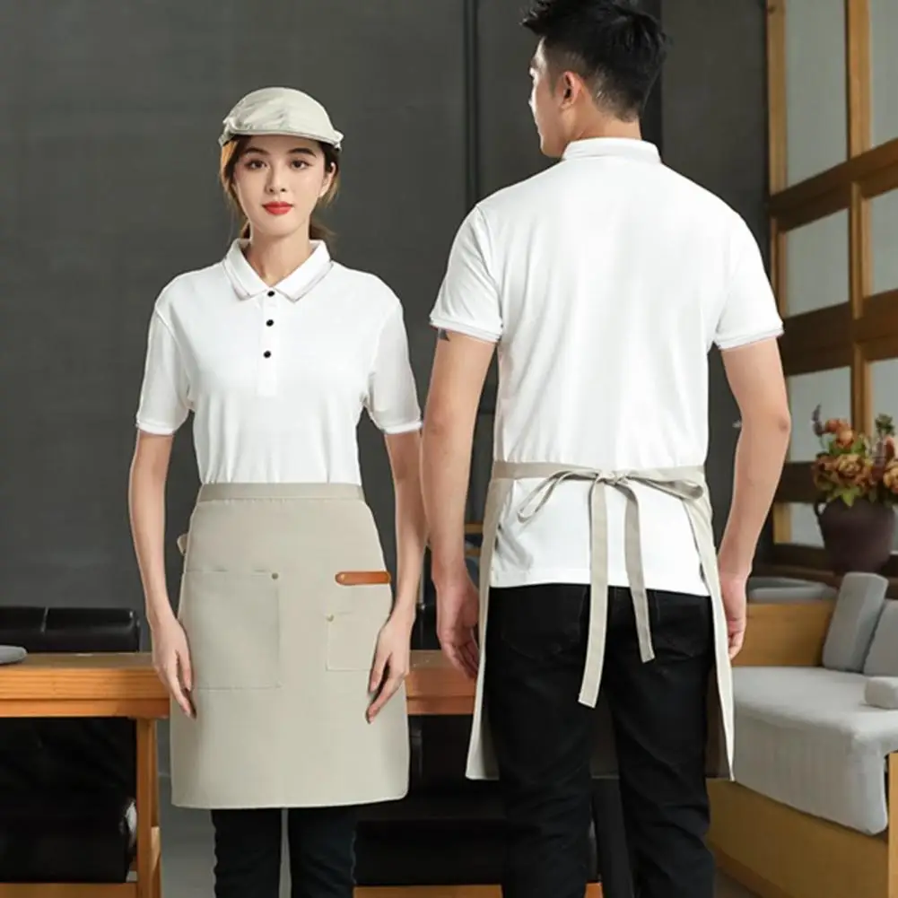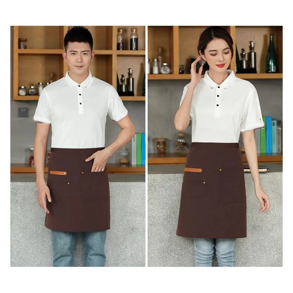 Demi-tablier avec poches, tablier en tissu imperméable pour serveur Chef, tablier de serveur de cuisine de couleur unie résistant aux taches pour hommes et femmes
