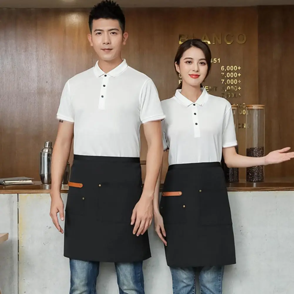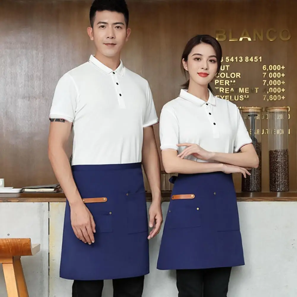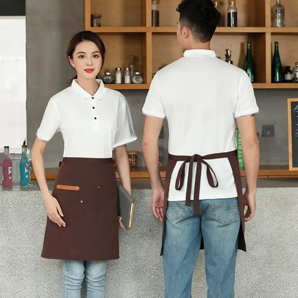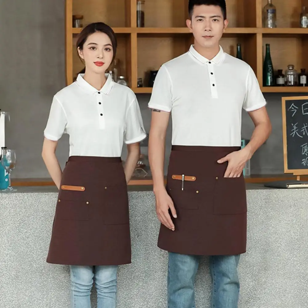 Demi-tablier avec poches, tablier en tissu imperméable pour serveur, chef, résistant aux taches, couleur unie, tablier de serveur de cuisine pour hommes et femmes