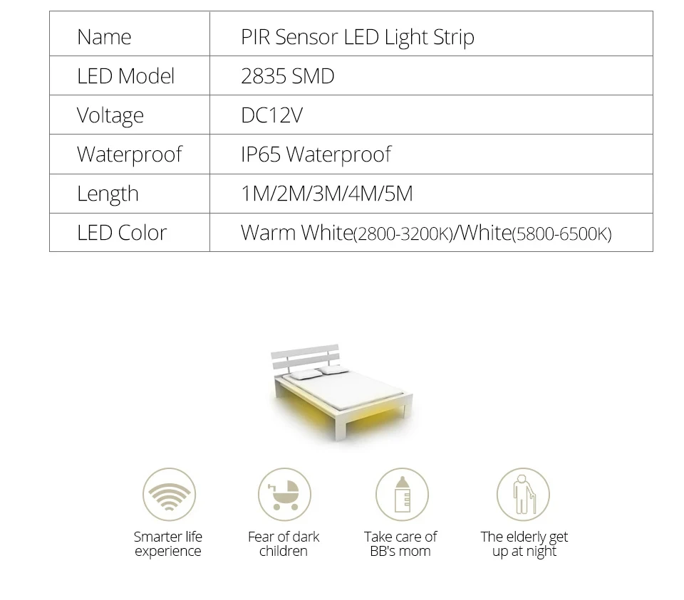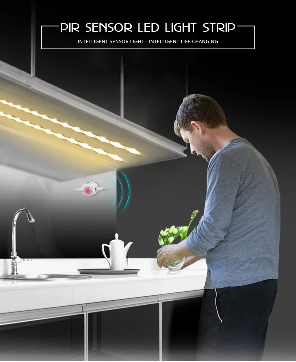 Détecteur de mouvement LED sous-meuble lumière 1m 2m 3m 4m 5m 12V Flexible PIR veilleuse cuisine armoire lit éclairage IP65 étancheDétecteur de mouvement LED sous-meuble lumière 1m 2m 3m 4m 5m 12V Flexible PIR veilleuse cuisine armoire lit éclairage IP65 étanche