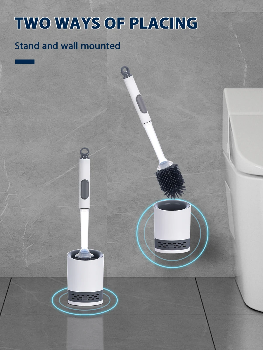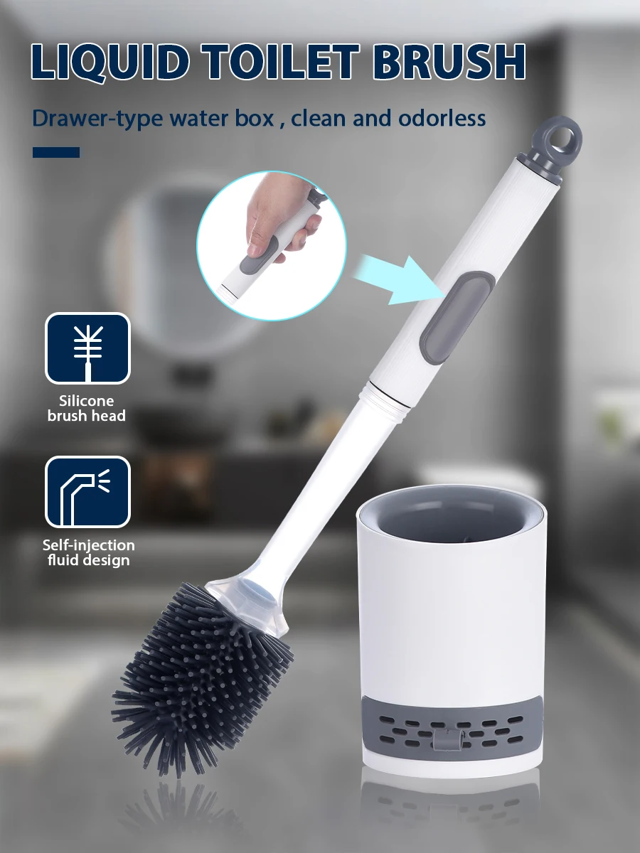 Détergent rechargeable Brosse de toilette Mural Longue poignée Silicone TPR  Brosse pour Coin Outils de nettoyage Accessoires de salle de bain