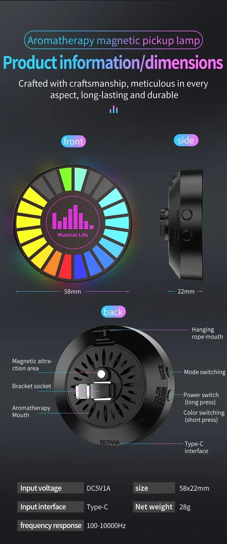- USB power music light: car aromatherapy lamp