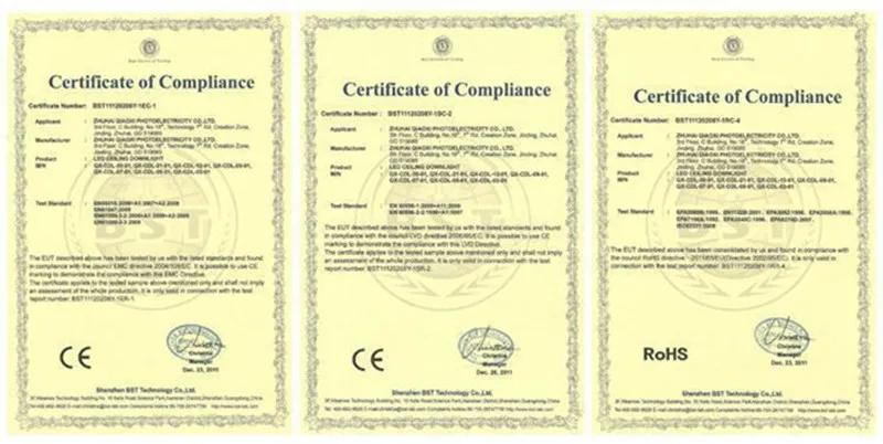 6.Produits de certification CCC, CE, FCC, UL, RoHS, SAA SGS (LED), pour votre sécurité garantie pour éviter les chocs électriques et les défauts d’incendie.