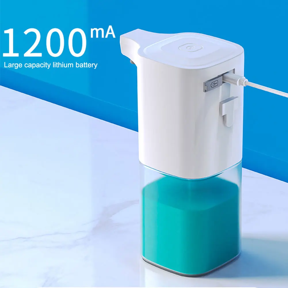 2.Batterie de grande capacité :Ce distributeur de savon est alimenté par une batterie au lithium haute capacité, permettant une utilisation et une commodité prolongées, facilement rechargeable via USB, garantissant qu’il est toujours prêt lorsque vous en avez besoin.