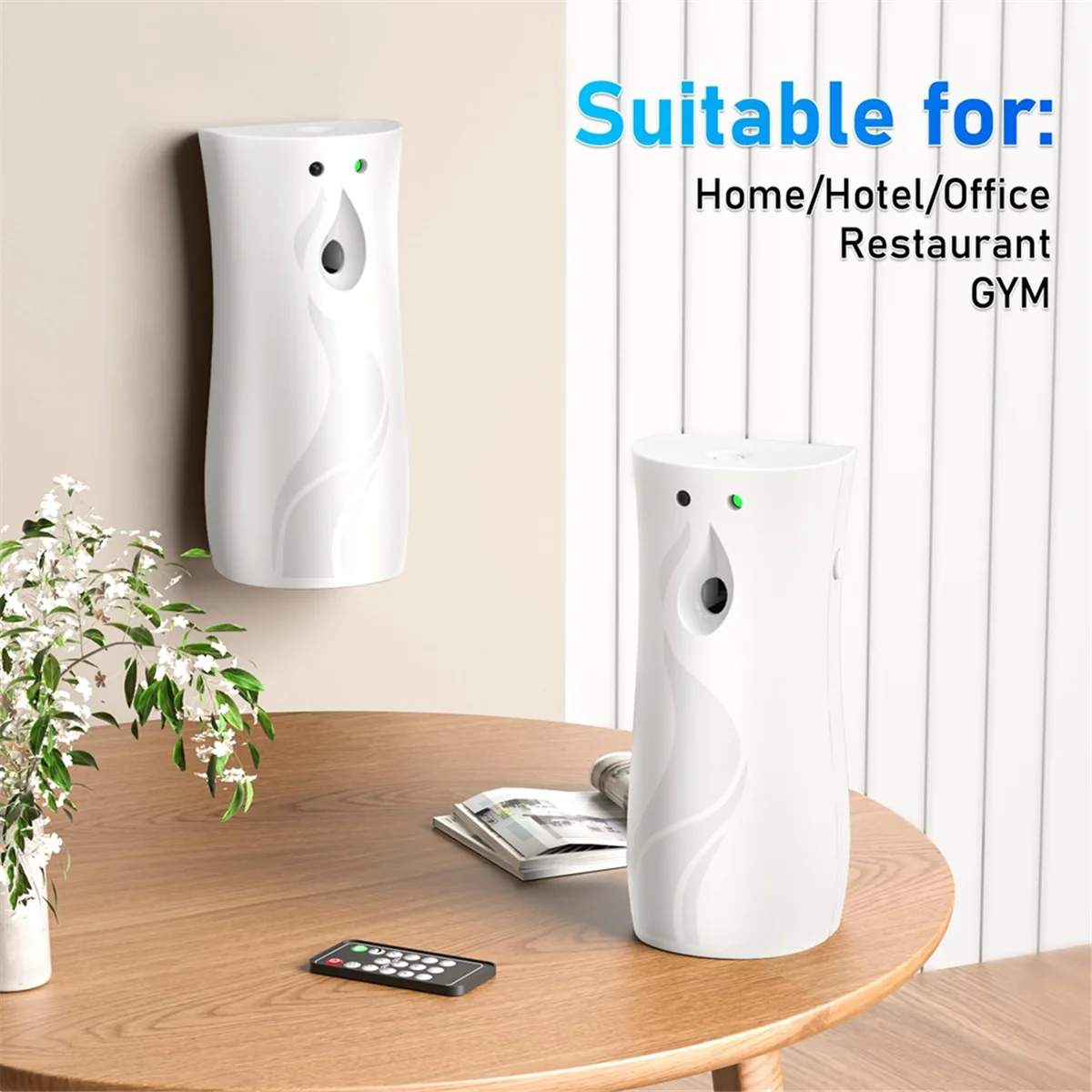 Idéal pour divers paramètres : améliorez l’ambiance de votre maison, bureau ou espace commercial avec cette machine à parfum efficace.Il est parfait pour une utilisation dans les salons, les salles de bains, les cuisines, les écoles, les restaurants et les toilettes publiques, luttant efficacement les odeurs et créant un environnement accueillant.