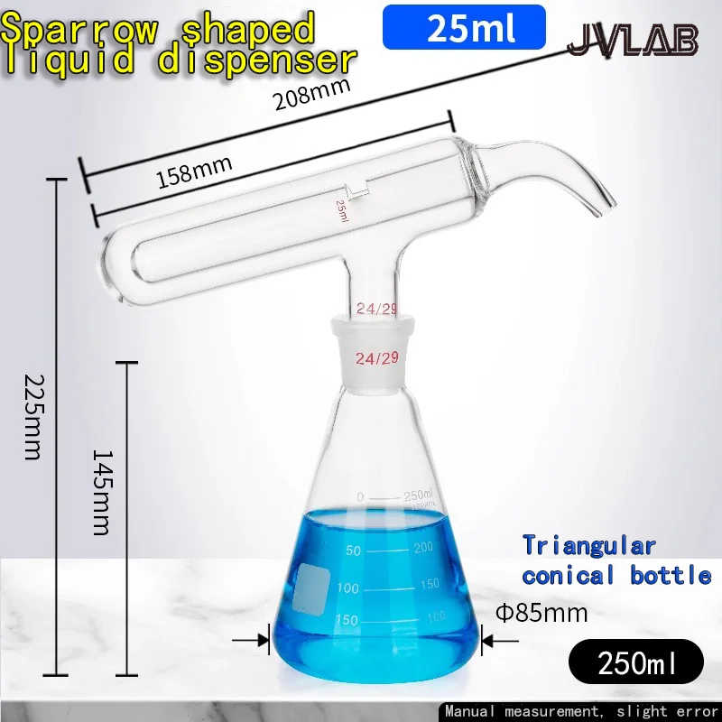 Le distributeur de liquide en forme de moineau est résistant aux hautes températures, fabriqué en matériaux de haute qualité avec une haute dureté et une transparence.Il est un matériau résistant à la corrosion avec une fabrication soignée et des erreurs basses, le fait plus adapté aux opérations expérimentales précises.
