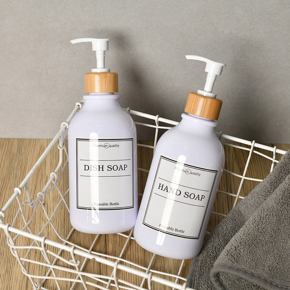 Distributeur de savon en plastique écologique réutilisable et rechargeable, économie d’argent et idéal pour les lotions pour le corps, les savons liquides, le gel douche et plus encore.