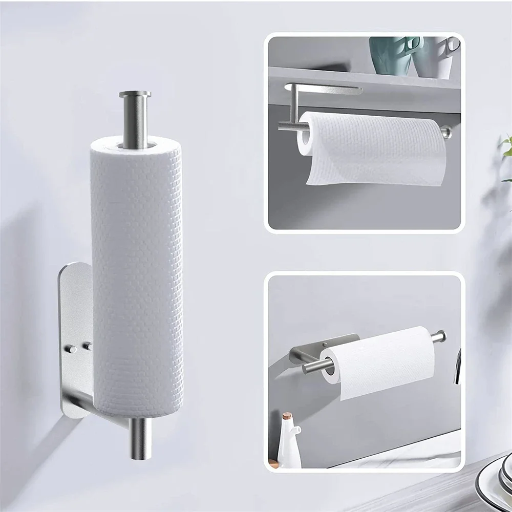Porte-papier hygiénique auto-adhésif en acier inoxydable 304, porte-serviettes de cuisine, distributeur de serviettes, support de papier absorbant, cintre à mouchoirs, accessoires de salle de bain sans perceuse, sans poinçon, sans perçage.
