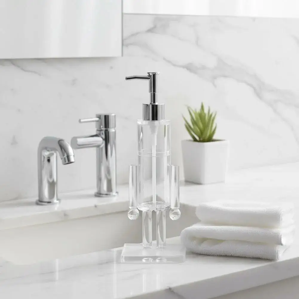 2.Fabriquée en acrylique de haute clarté, cette pompe à savon transparente offre un aspect élégant et poli qui résiste à la buée et aux rayures, conservant son aspect brillant même avec une utilisation quotidienne