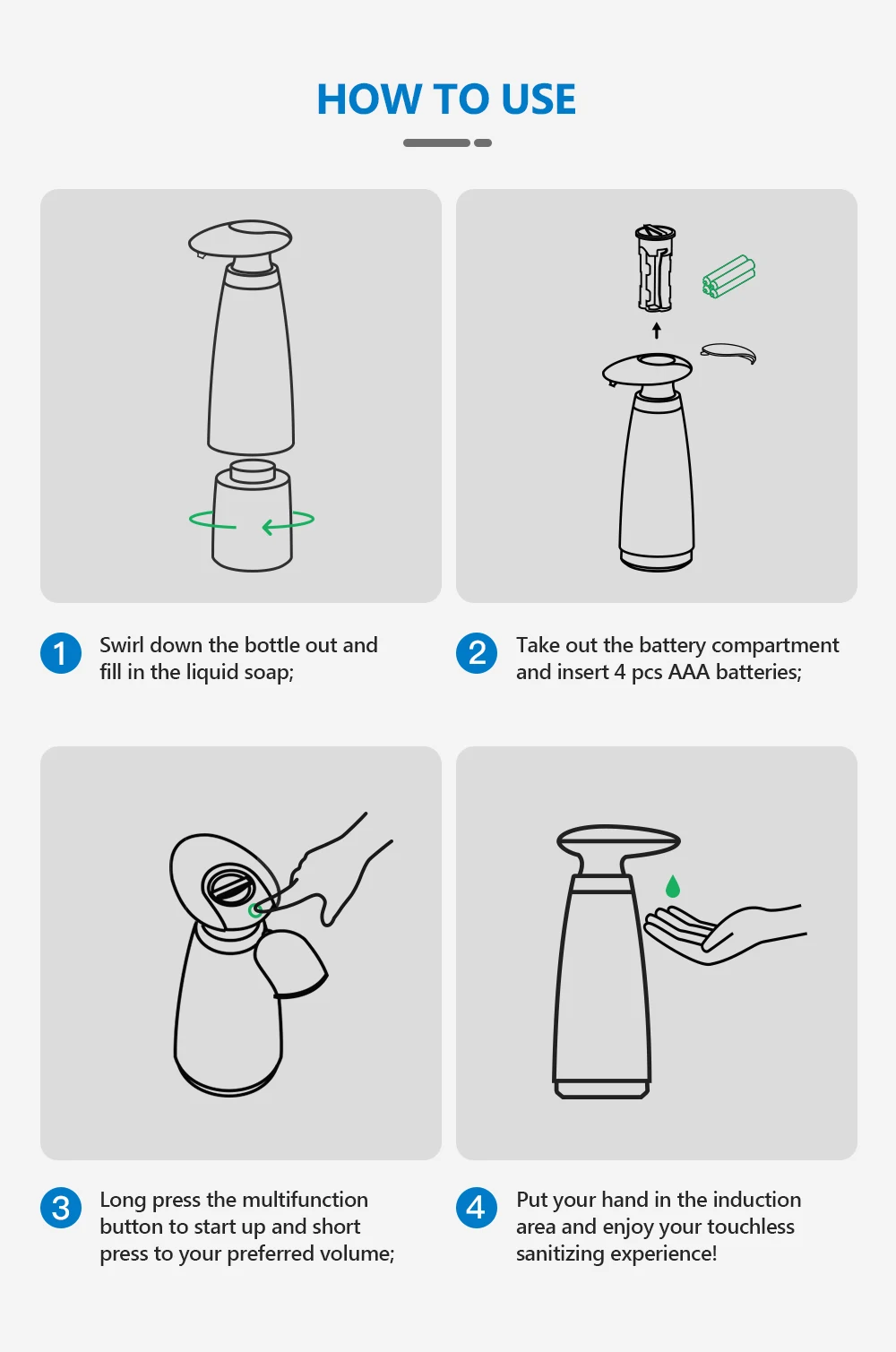 - Type de distributeur de savon liquide: Distributeur automatique de savon
