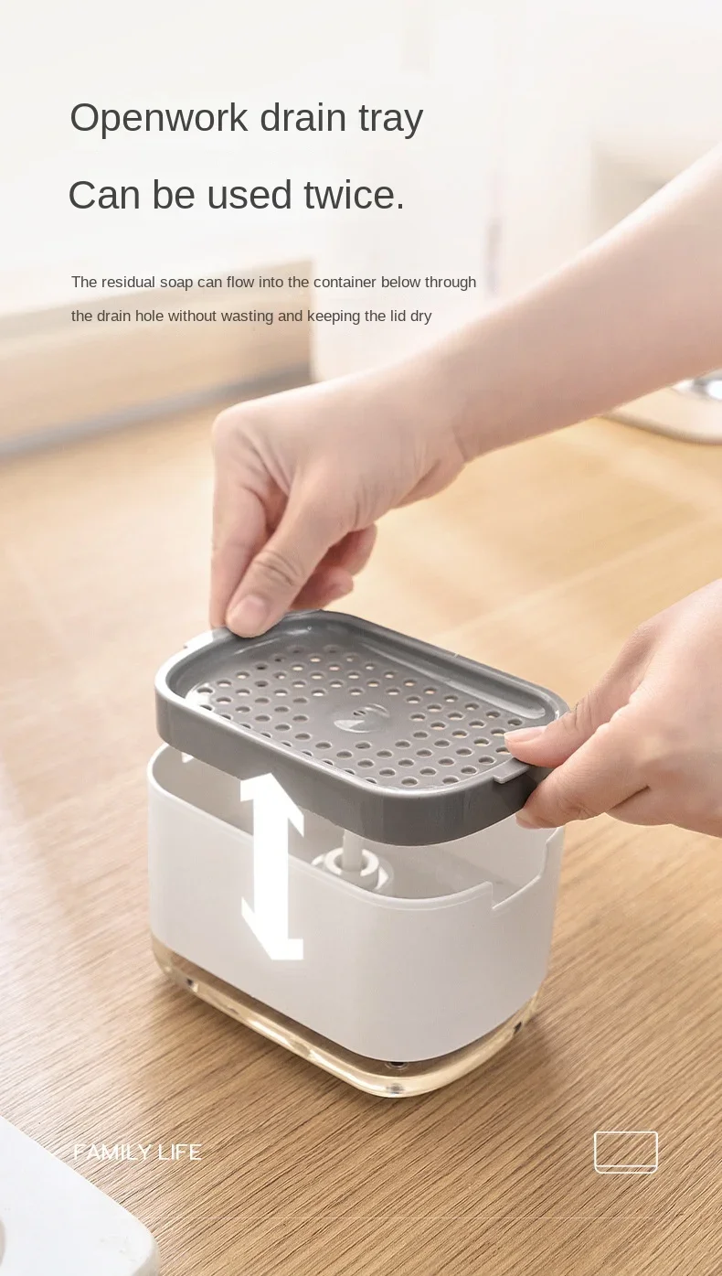 ANTI-FUITE ET NETTOYAGE FACILE: Le distributeur de savon à vaisselle avec porte-éponge peut parfaitement remplacer le distributeur de liquide vaisselle traditionnel. Le fond du support de plateau est de conception creuse et étanche, ce qui est pratique pour stocker le liquide résiduel. Lors du nettoyage, il suffit de retirer l’étagère du plateau et de verser le liquide à l’intérieur pour le nettoyer, très pratique, c’est un cadeau parfait pour vos amis ou votre famille.