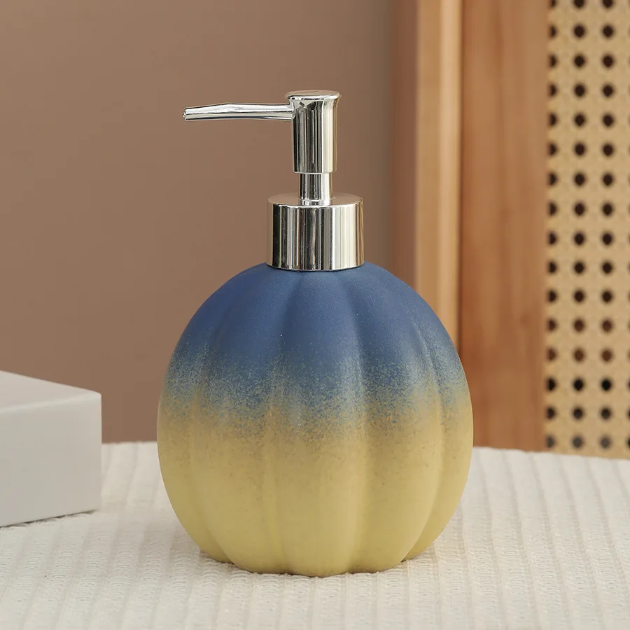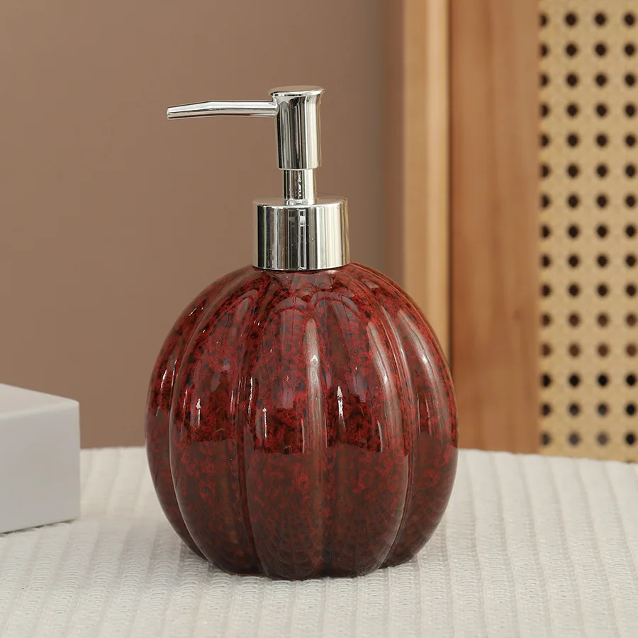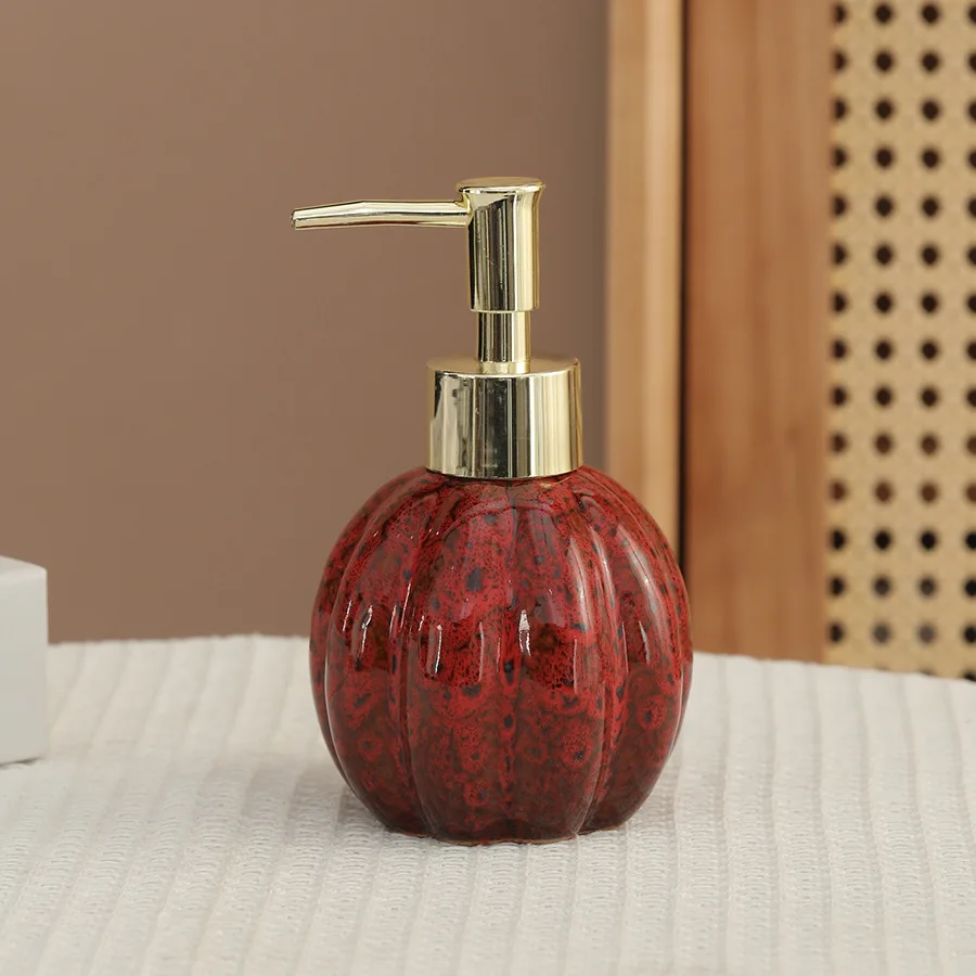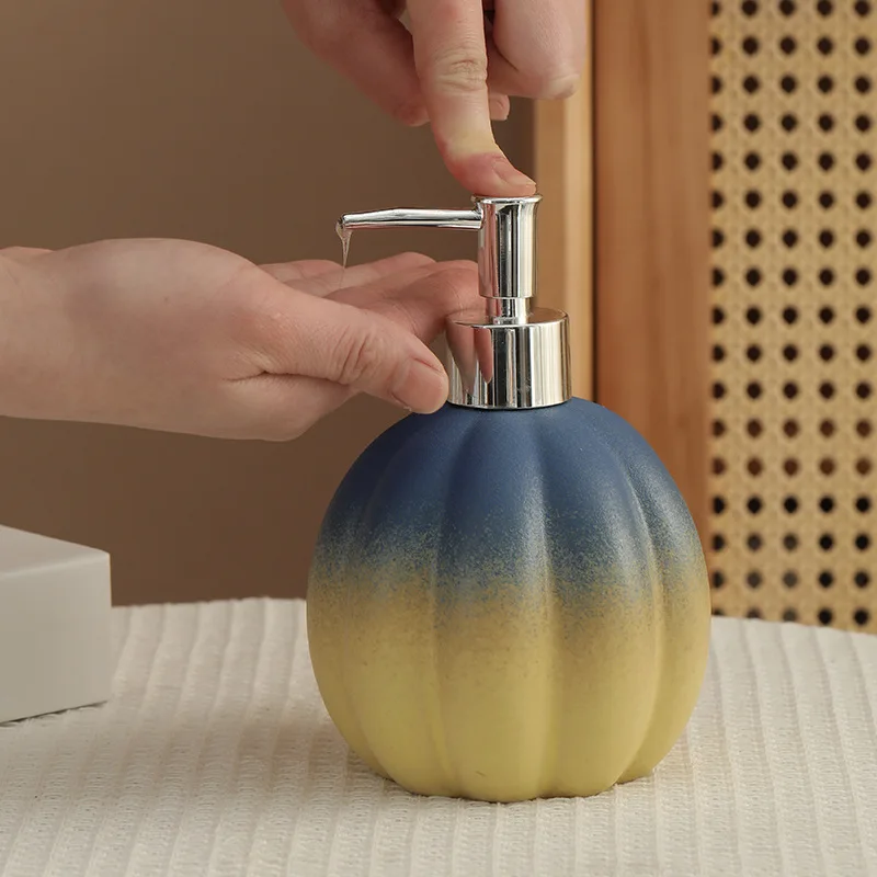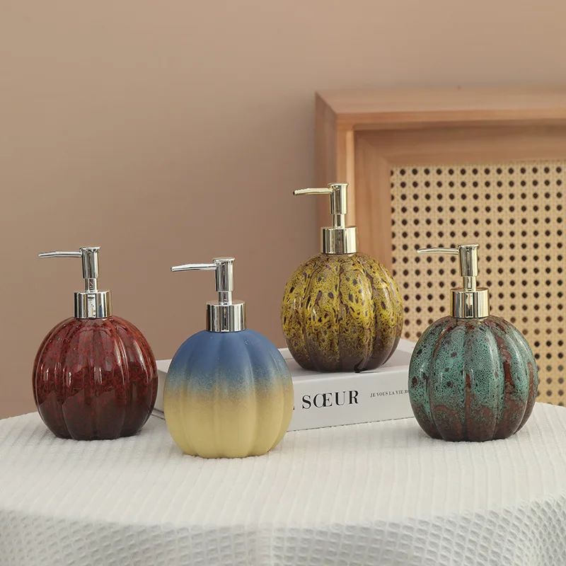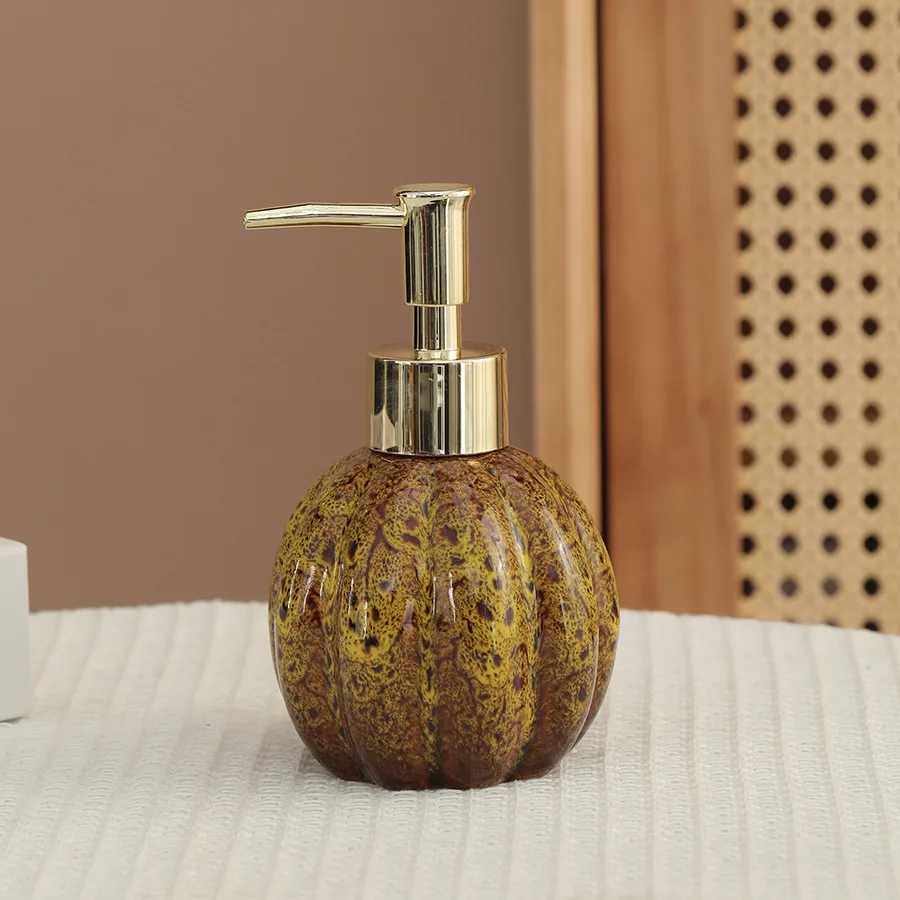 Distributeur de savon citrouille céramique désinfectant pour les mains bouteille shampoing et gel douche presse et dispense bouteille décoration distributeur