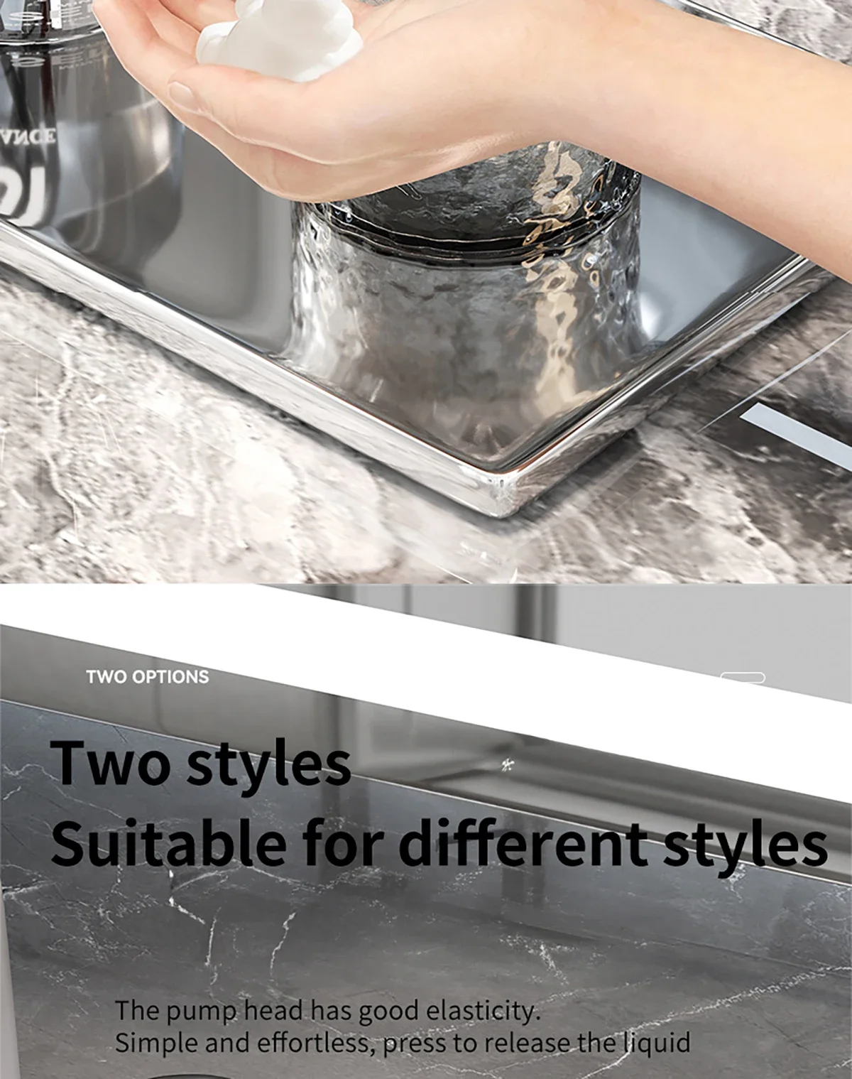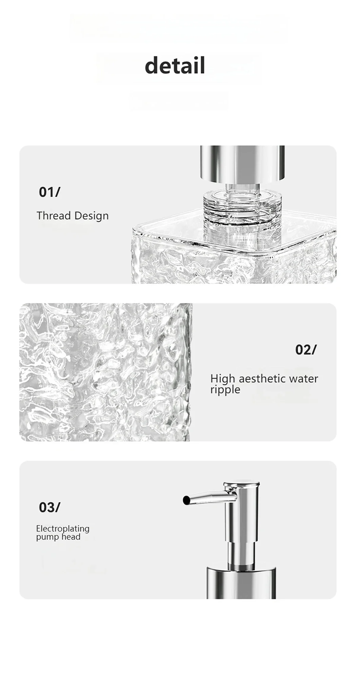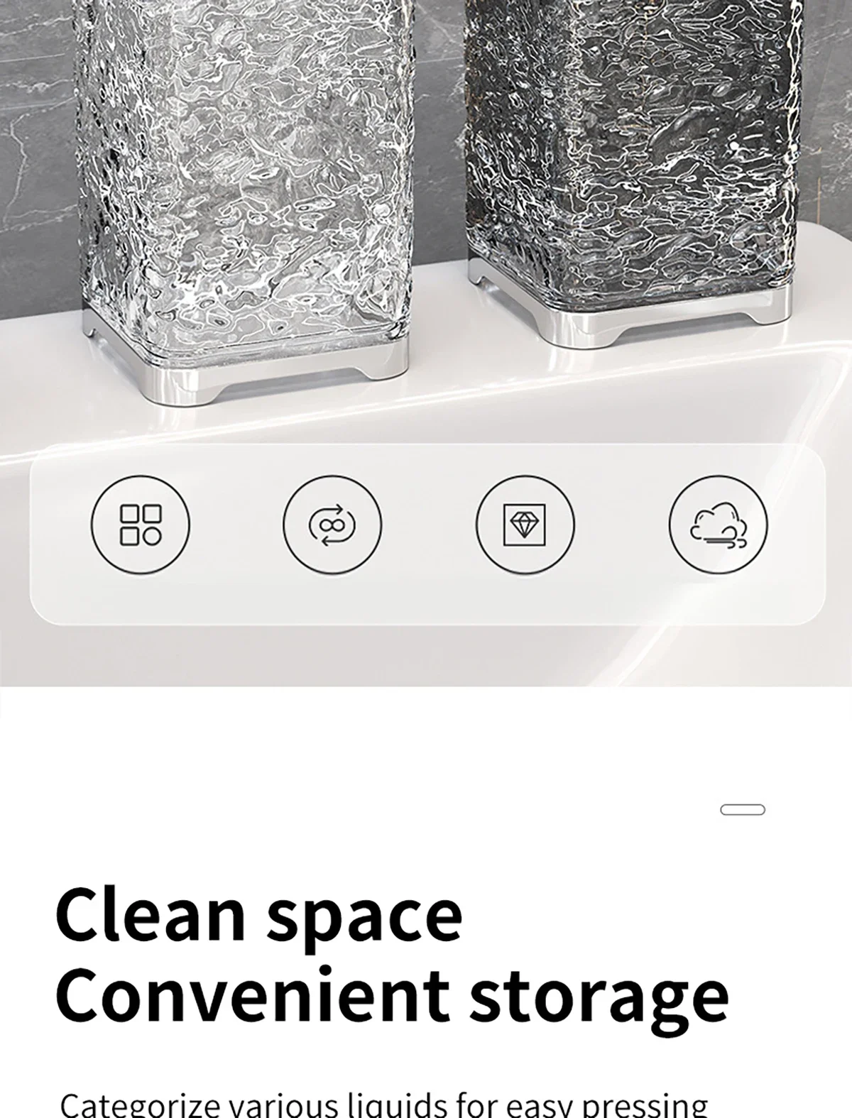 Application : convient pour la cuisine, la salle de bain et d’autres endroits, peut être utilisé pour contenir du savon pour les mains, du détergent, du gel douche et d’autres liquides.