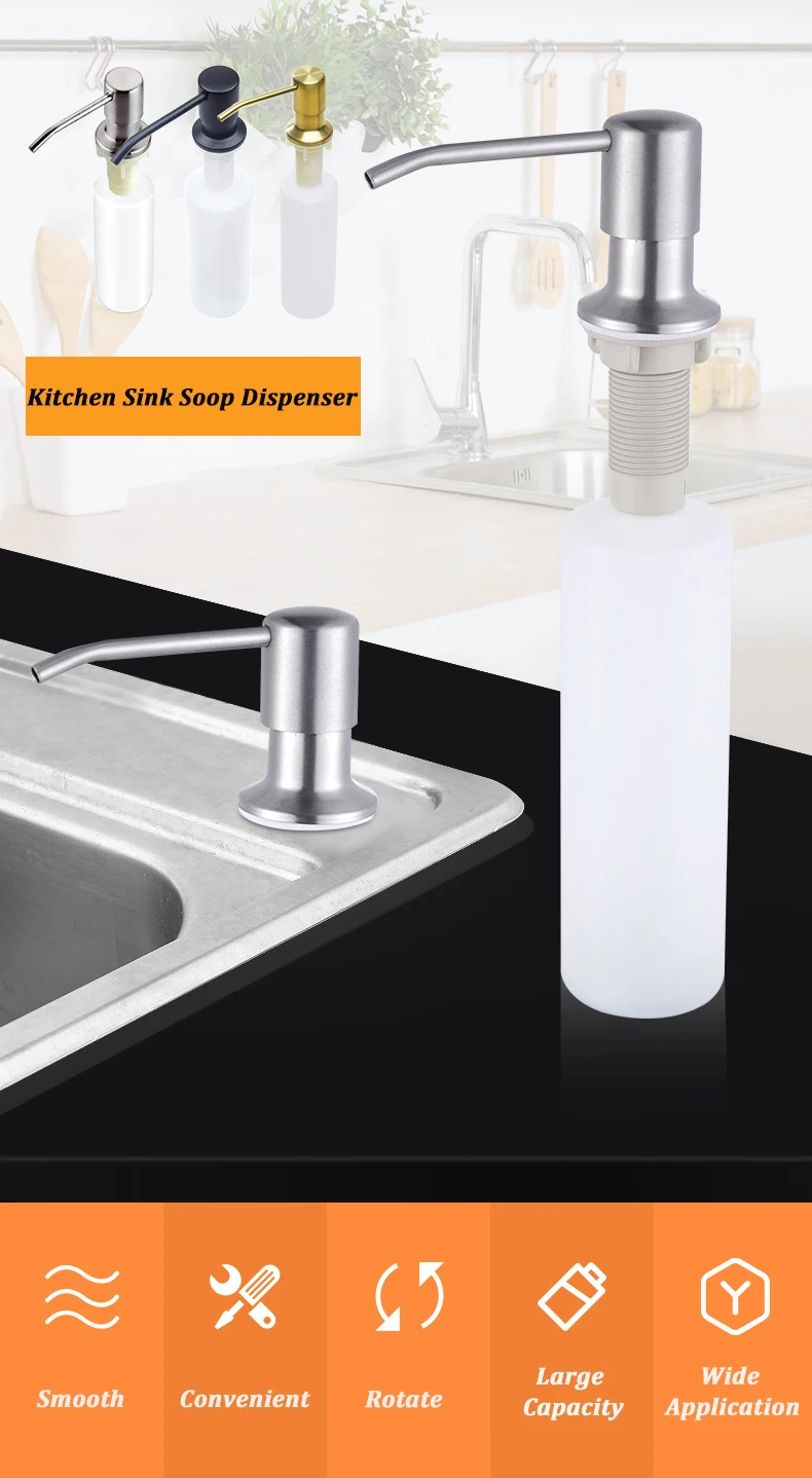 Distributeur de savon pour évier de cuisine en acier inoxydable avec bouteille Savon de salle de bain Lotion Détergent Liquide Presse à main Pompes Distributeurs 350ml