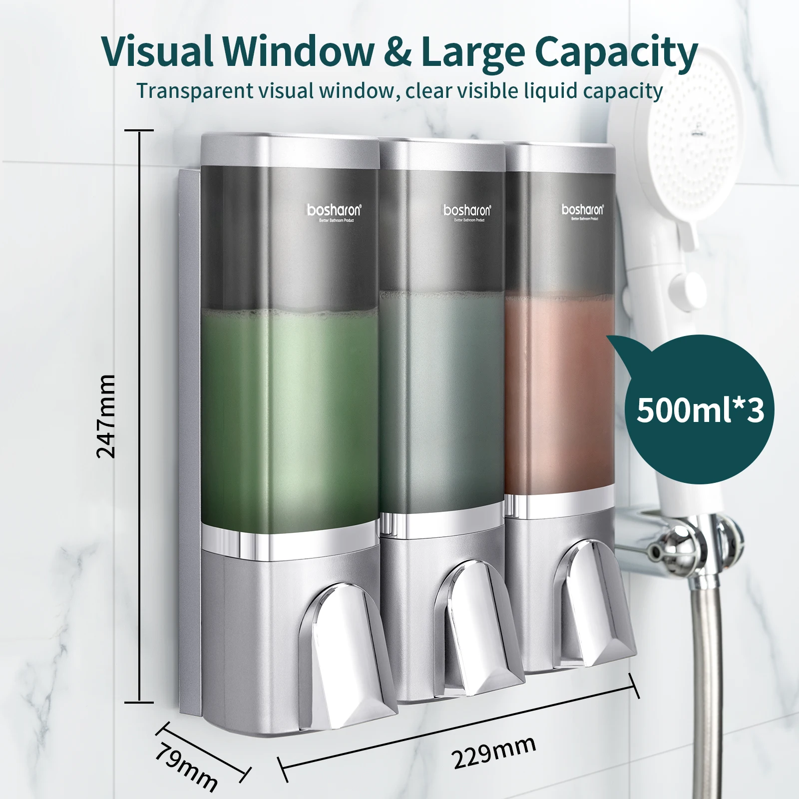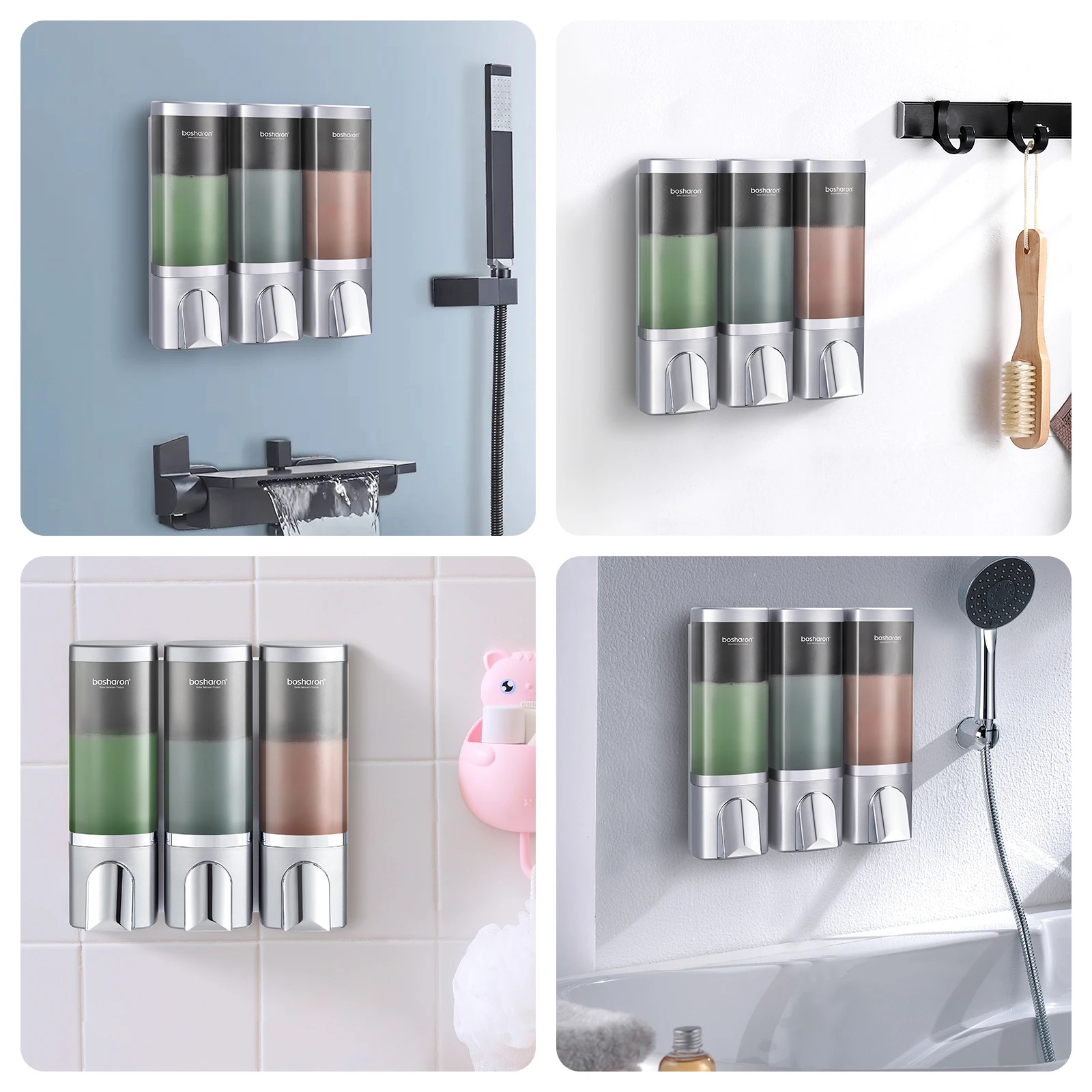 Nom du produit : distributeur de douche de salle de bain 3 × 500 ml.
