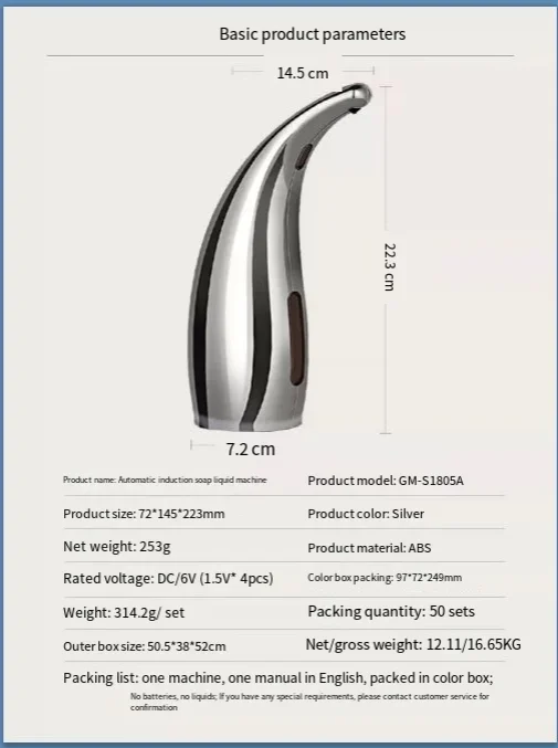 Nom du produit: distributeur de savon à capteur automatique