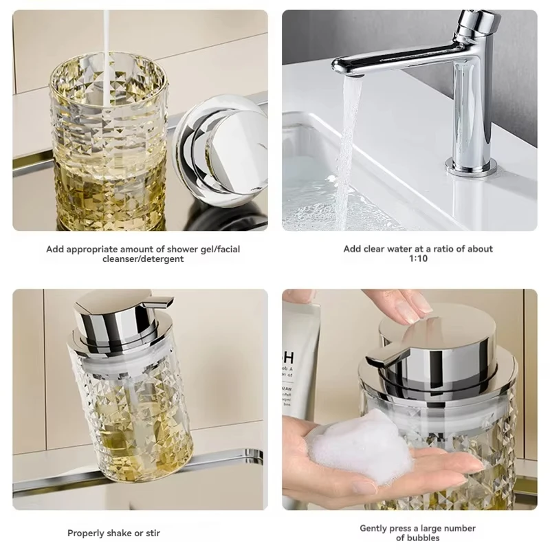 1. La bouteille de mousse de savon pour les mains avec pompe facile à presser peut être utilisée pour la salle de bain et la cuisine.