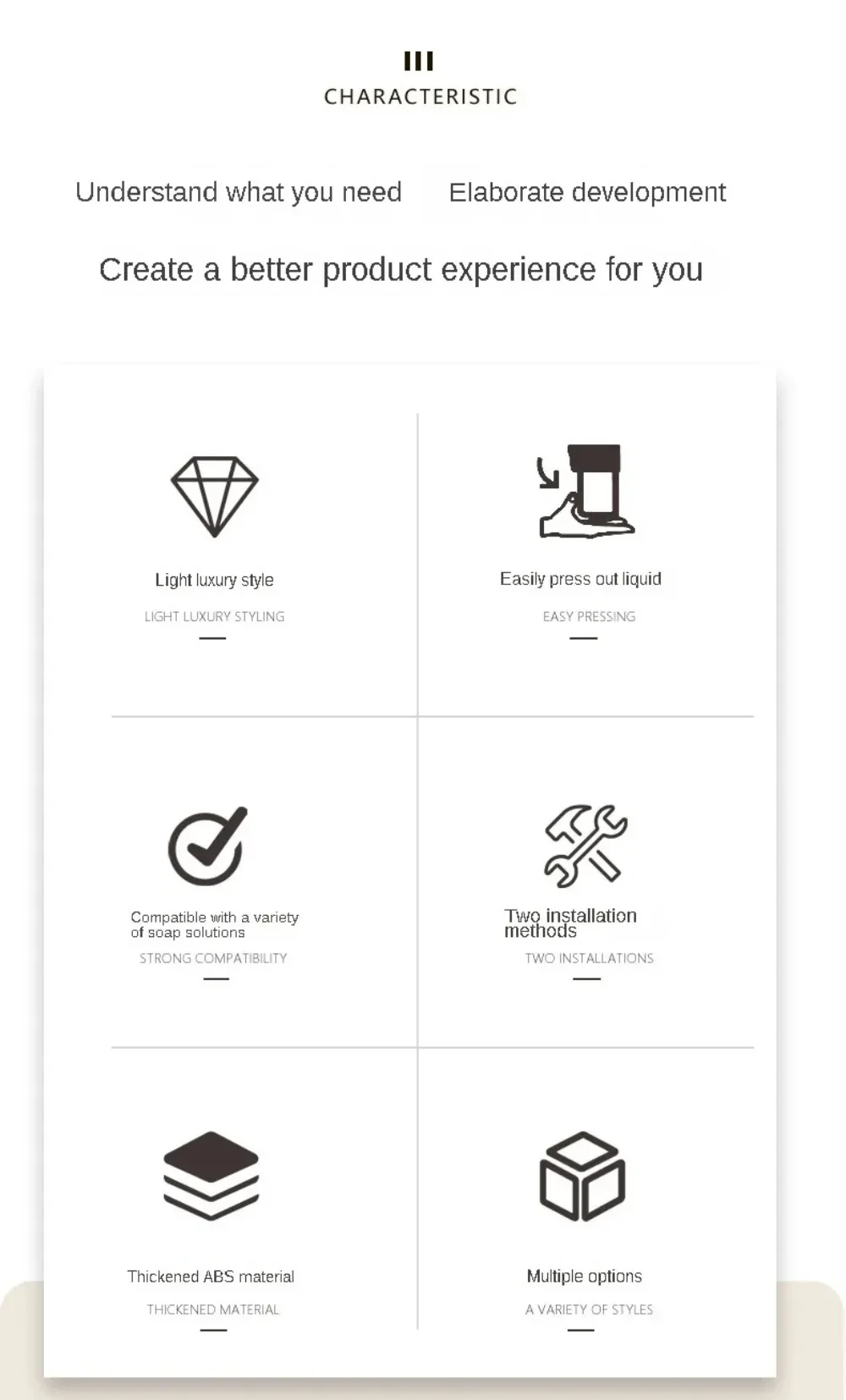 CONCEPTION DE LUXE SIMPLE: Le distributeur de savon de douche est conçu dans une couleur unie, et l’ensemble de distributeur de savon de douche peut mieux s’intégrer à votre environnement domestique et rendre votre maison plus luxueuse.