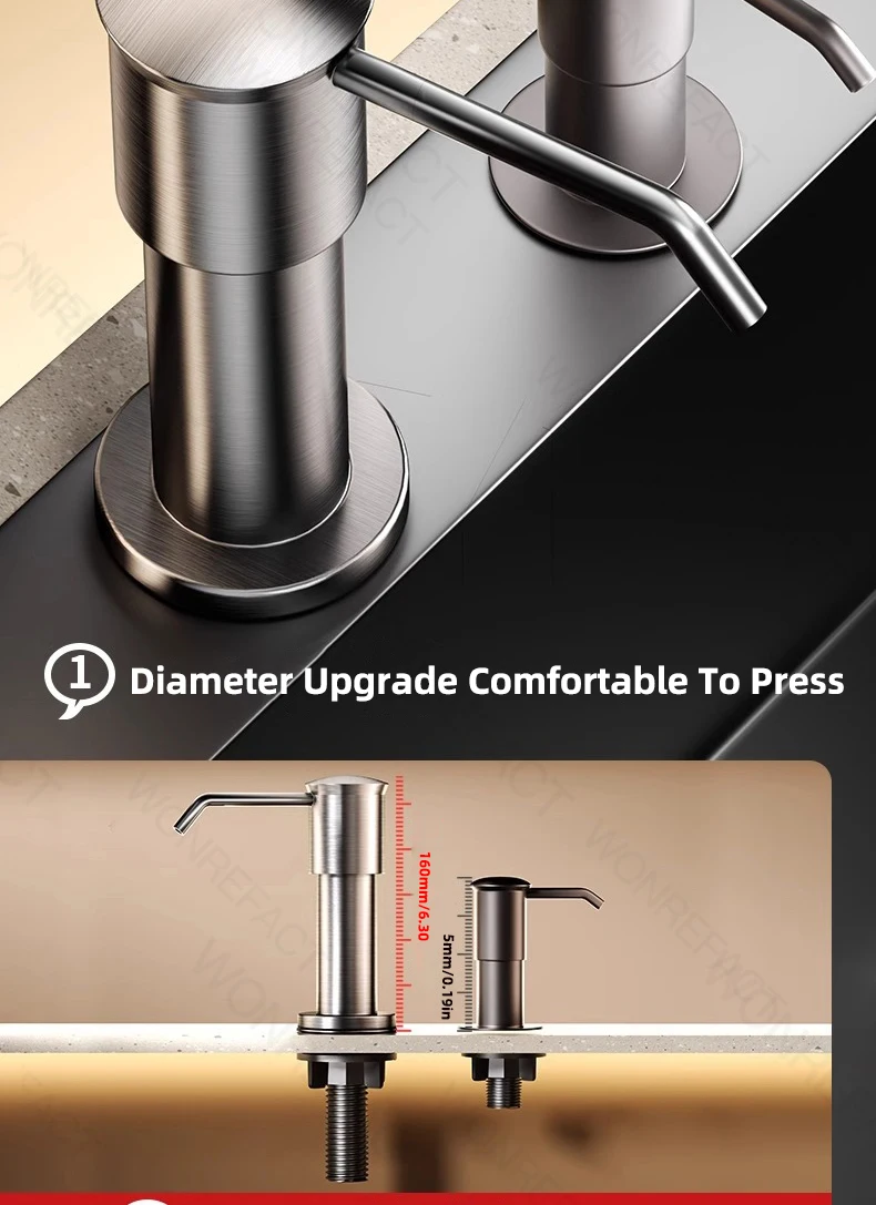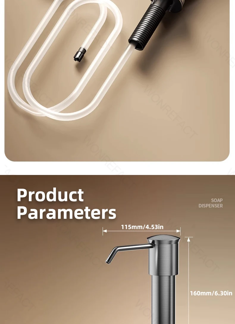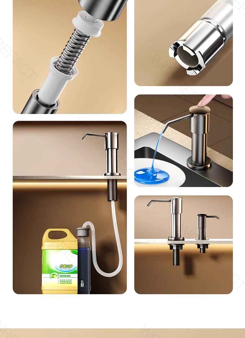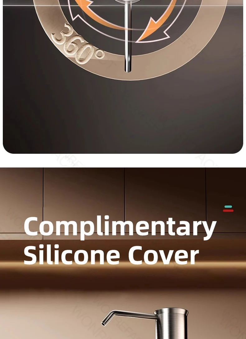 1. Avantages Facile à installer Aucun outil requis Délicat sans brouillage Grande quantité de liquide distribué Robuste et durable 2.360°rotation Tube étendu coupé à longueur Il est l’un des accessoires essentiels pour les éviers de cuisine.