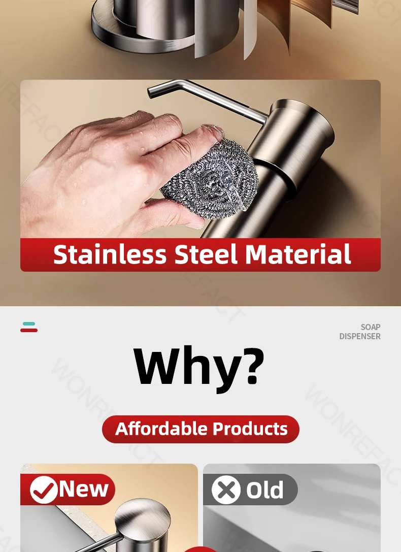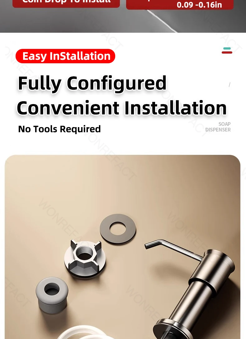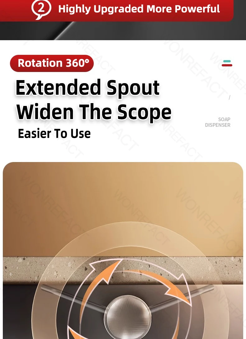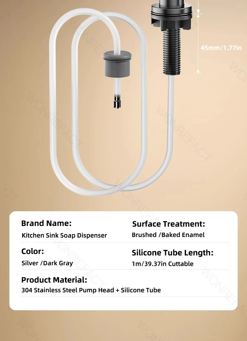 1. Avantages Facile à installer Aucun outil requis Délicat sans brouillage Grande quantité de liquide distribué Robuste et durable 2.360°rotation Tube étendu coupé à longueur Il est l’un des accessoires essentiels pour les éviers de cuisine.