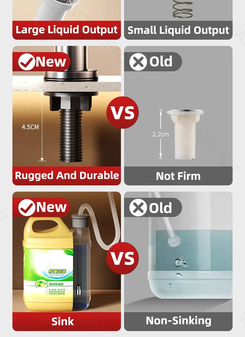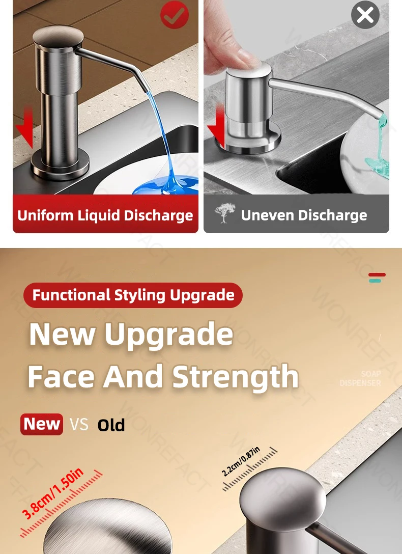 1.Avantages Facile à installer Aucun outil requis Distribution fluide sans blocage Grande quantité de liquide distribué Robuste et durable 2.360°rotation Tube allongé coupé à la longueur C’est l’un des accessoires essentiels pour les éviers de cuisine.