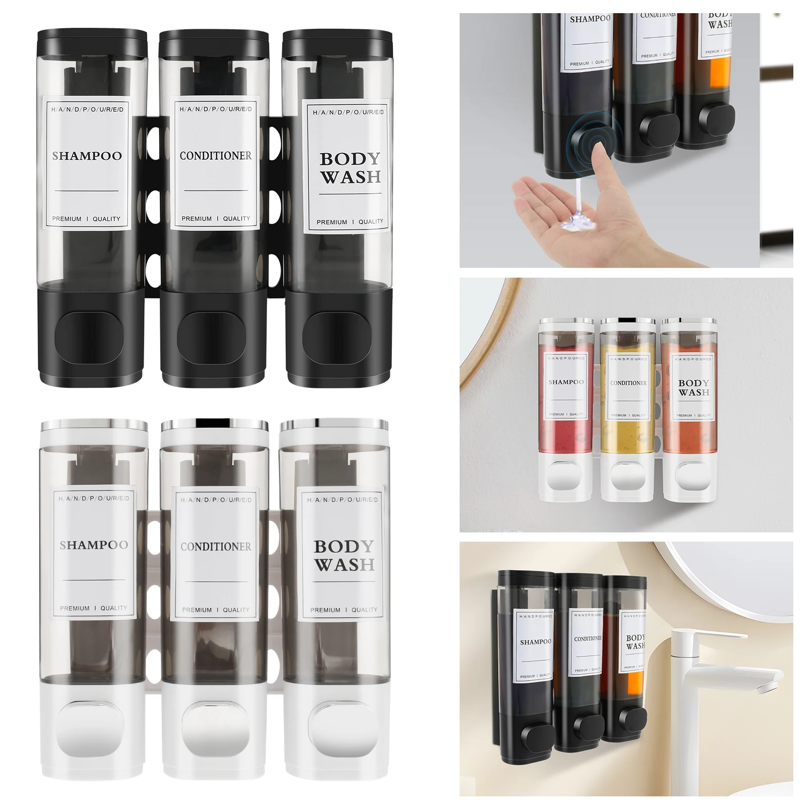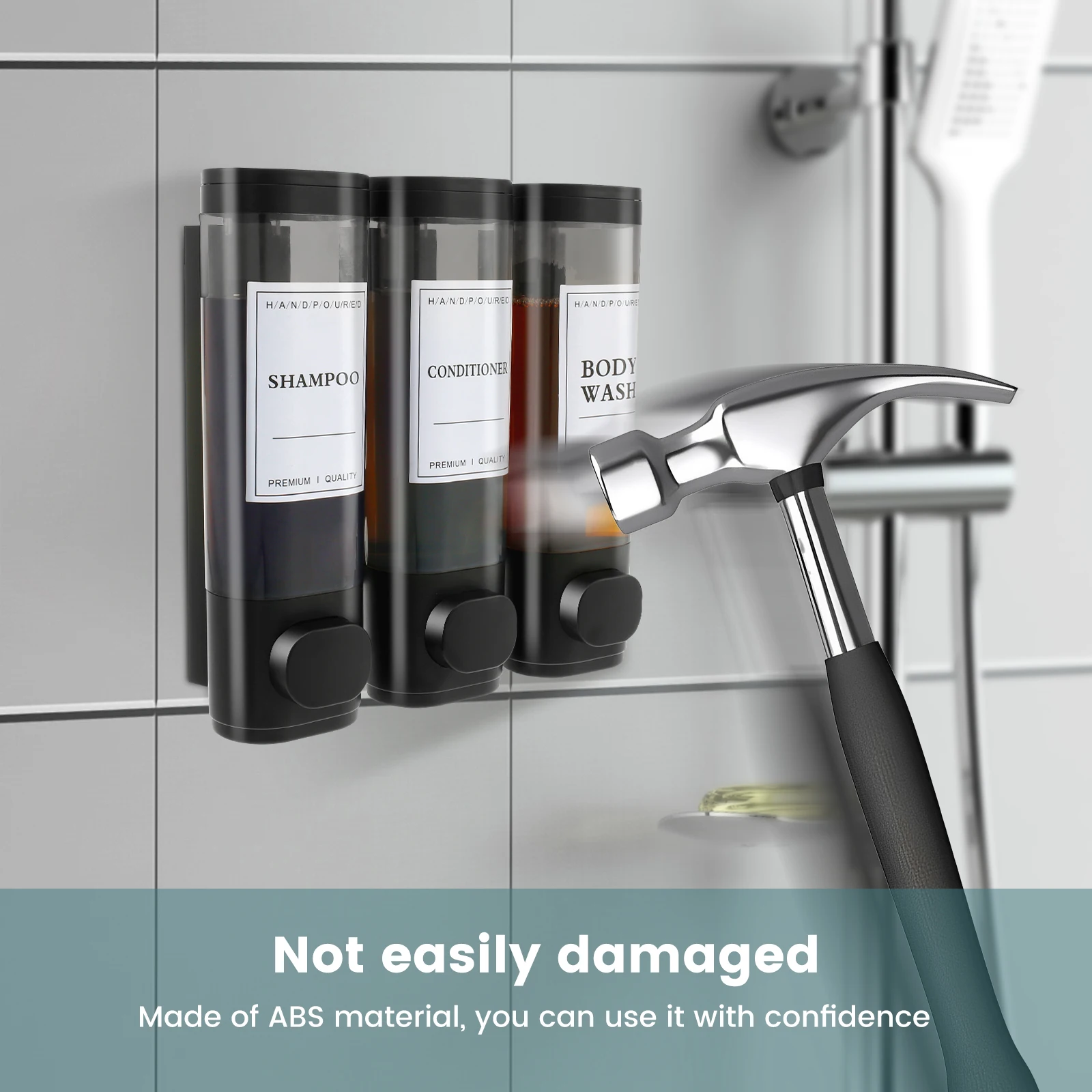 4) Texture ABS durable: Ce distributeur de savon de douche est fabriqué en ABS, durable et robuste pour une utilisation à long terme
