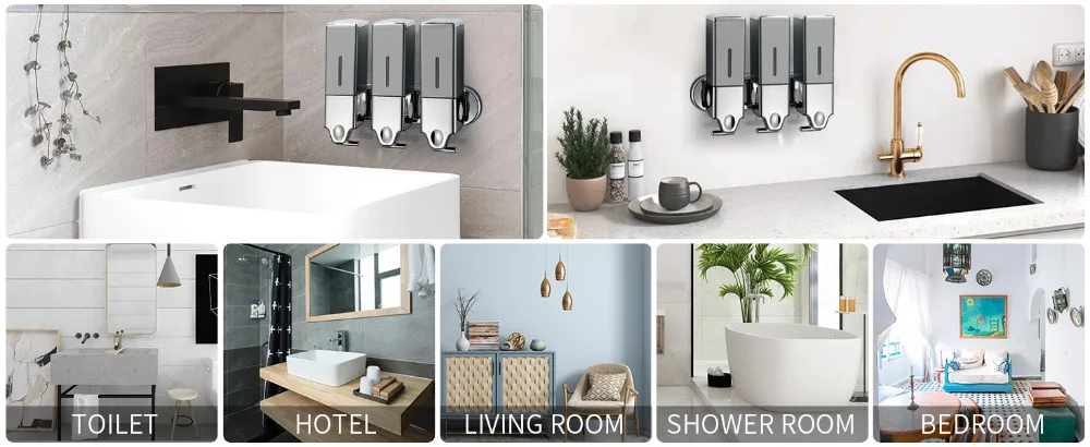 distributeur mural double savon shampooing revitalisant liquide ABS chromé rectangulaire compact transparent fenêtre verticale levier poussoir ergonomique anti gouttedistributeur mural double savon shampooing revitalisant liquide ABS chromé rectangulaire compact transparent fenêtre verticale levier poussoir ergonomique anti goutte