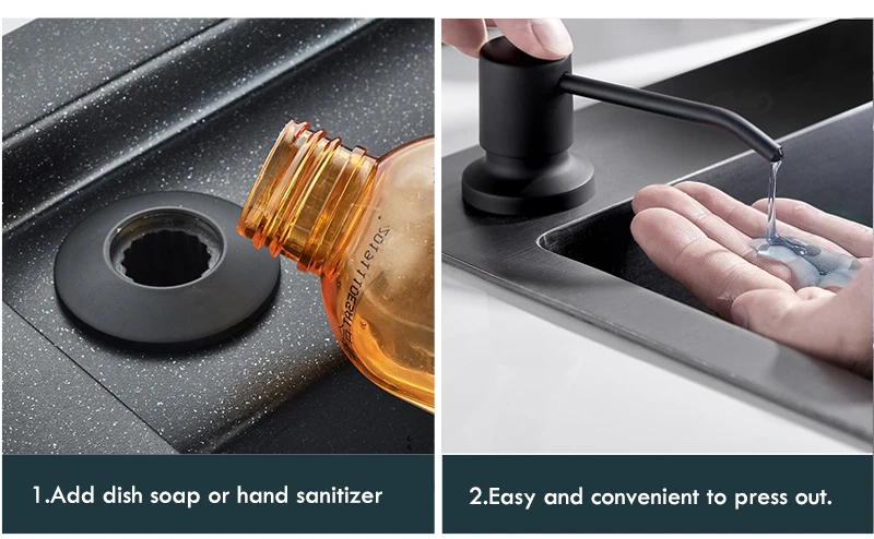 EASY TO CLEAN – To keep the Sink Soap Dispenser looking new, all you need to do is wipe it down with rag and warm, soapy water and the Black Matte finish will look brand new once again.