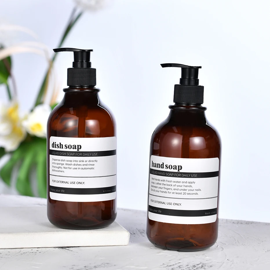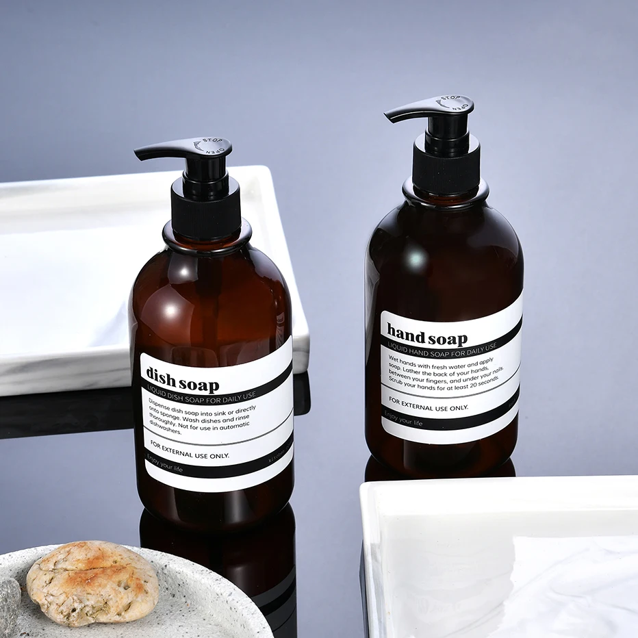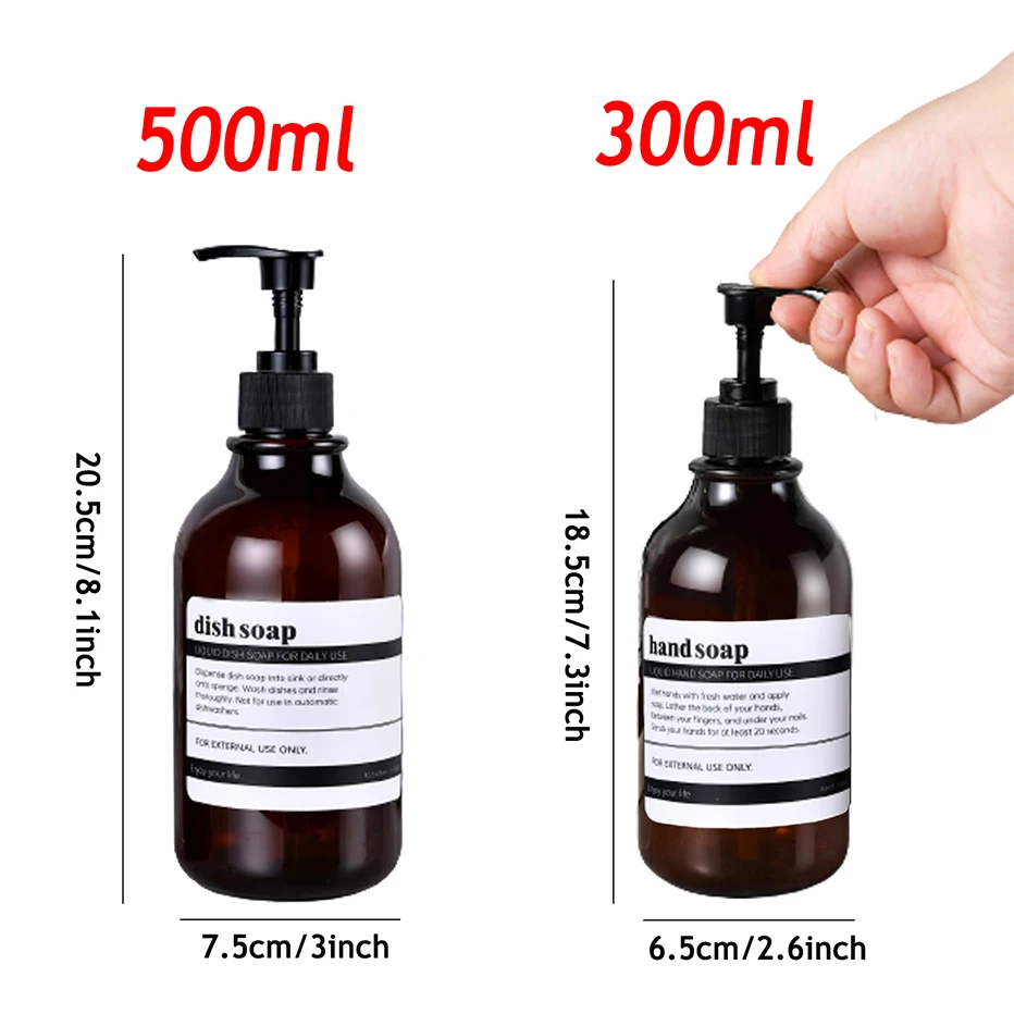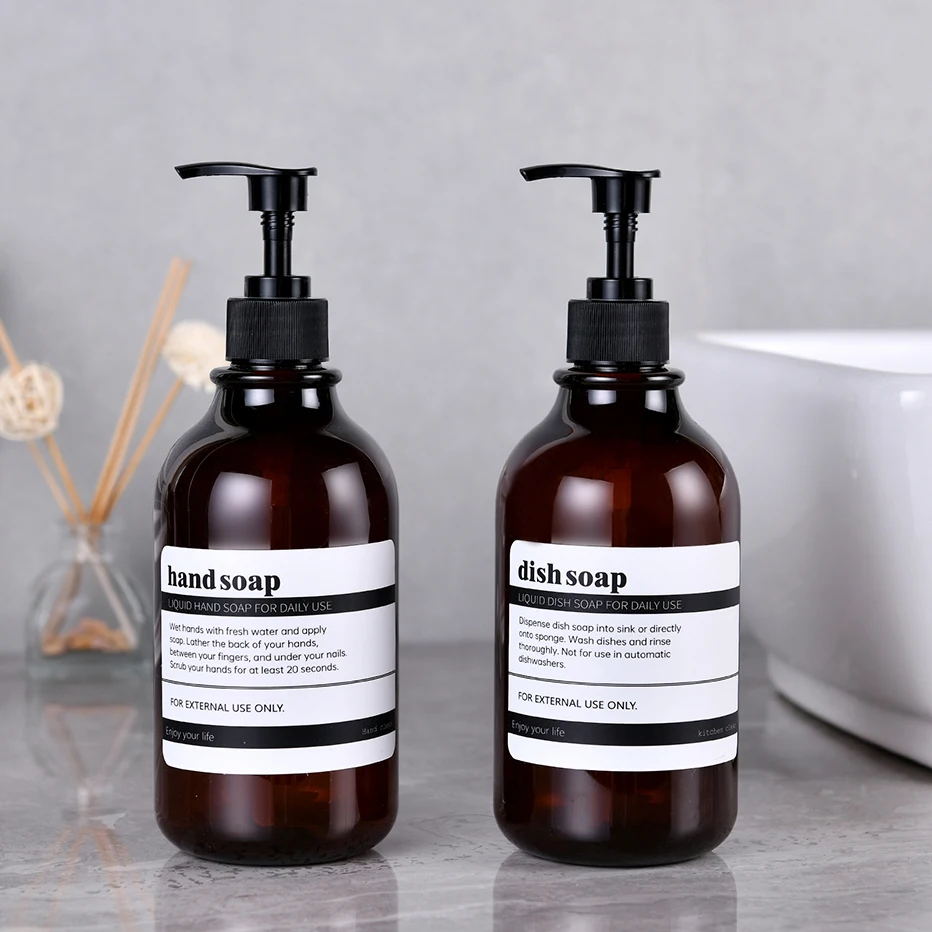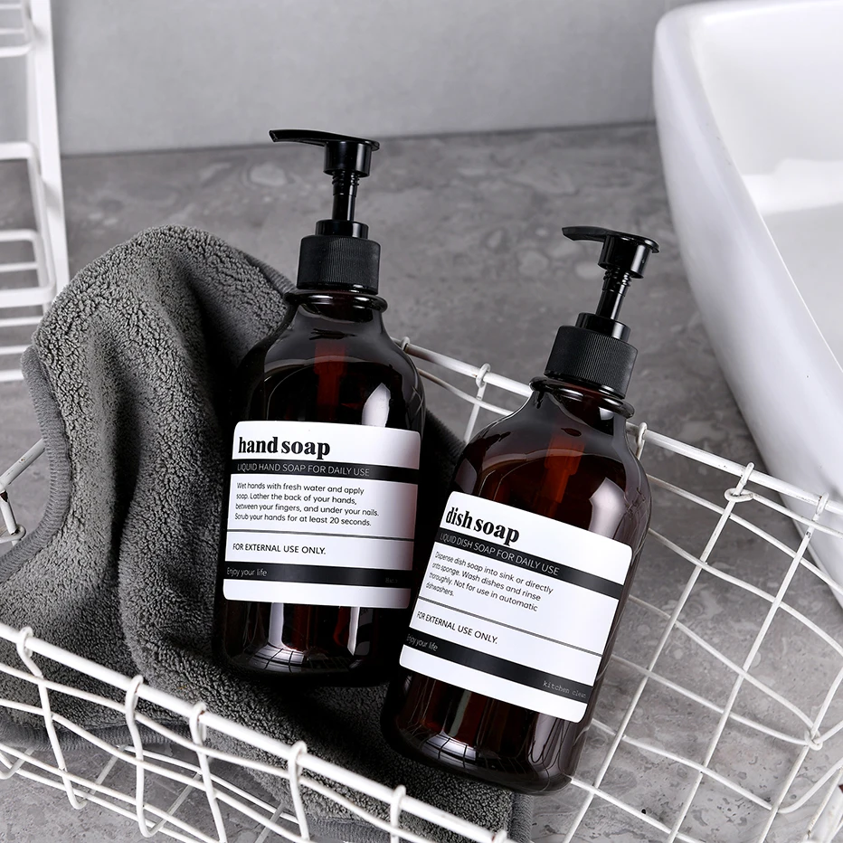 Distributeur de savon à vaisselle pour évier de cuisine avec pompe Bouteille de savon à main de salle de bain avec étiquette étanche Conteneur de lotion de salle de bain