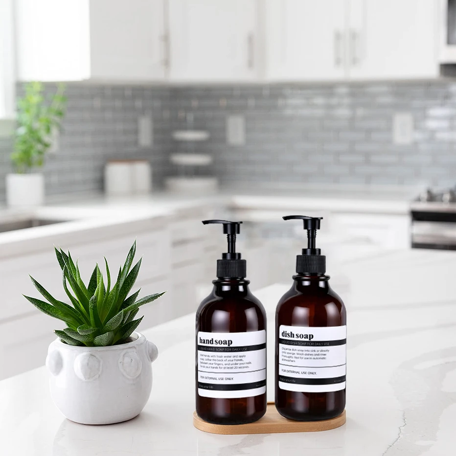 Dish Soap Dispenser for Kitchen Sink with Pump Bathroom Hand Soap Bottle with Waterproof Label Bathroom Lotion Container