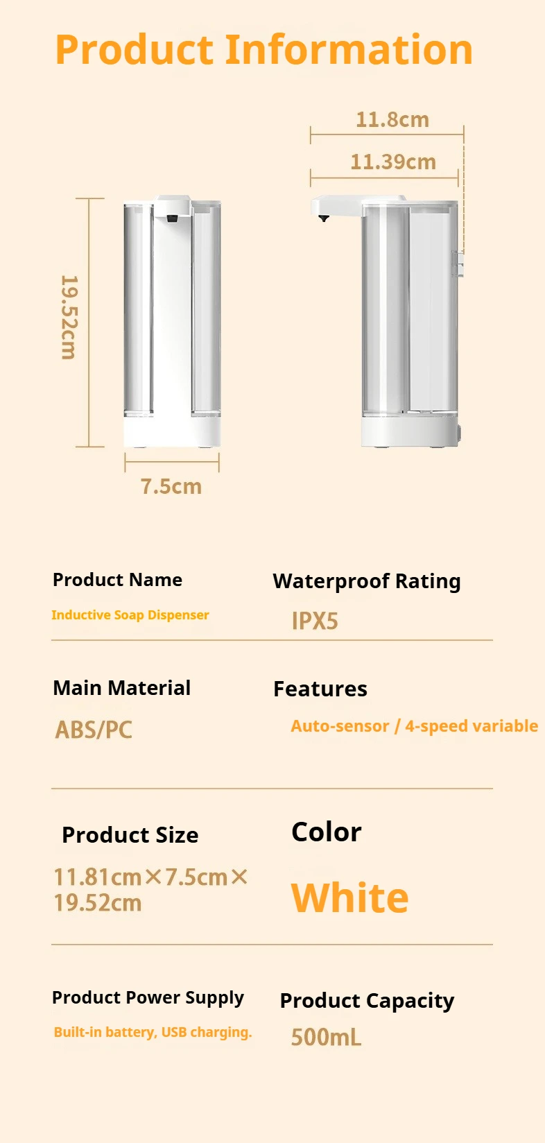 Distributeur automatique de savon pour les mains sans contact : placez simplement votre main sous le capteur pour démarrer le distributeur de savon sans contact.Il libérera automatiquement le savon sans laisser de germes, de graisse ou de taches.