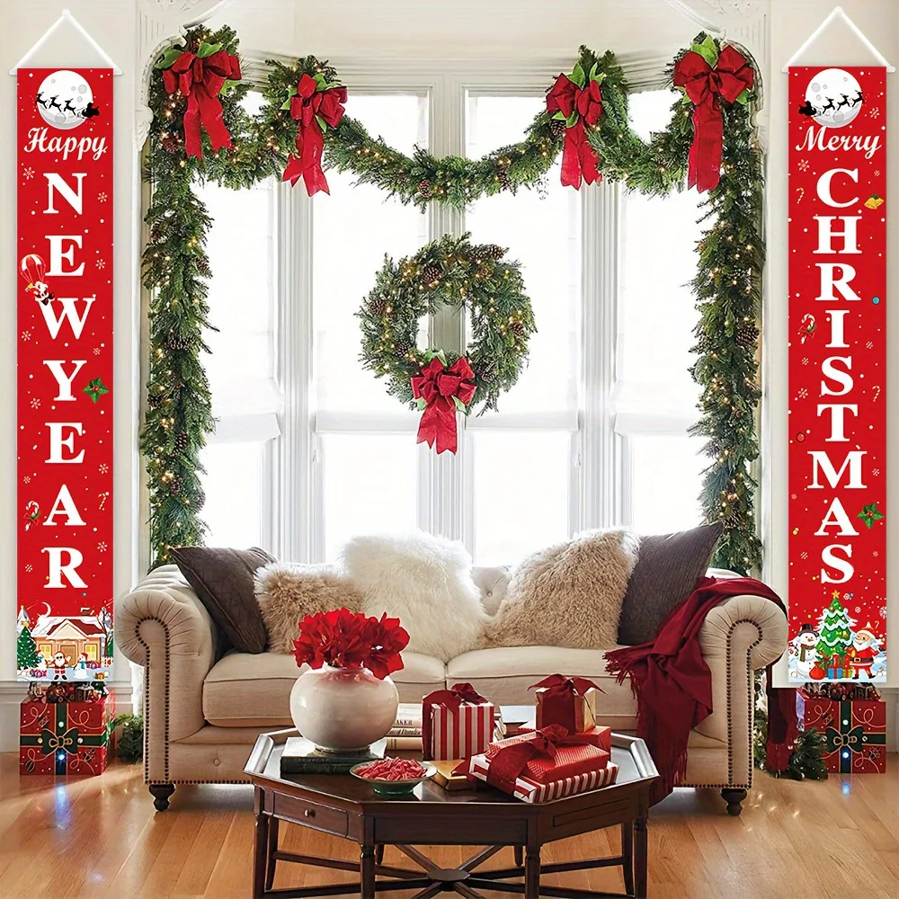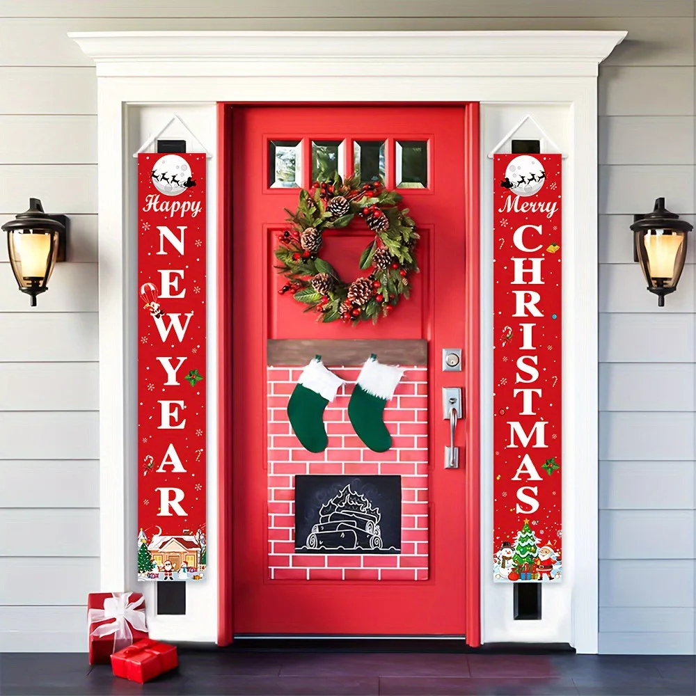 Divers bannières décoratives de Noël, imprimées avec des motifs sur le thème de Noël, sont parfaits comme des décorations festives d’entrée de maison