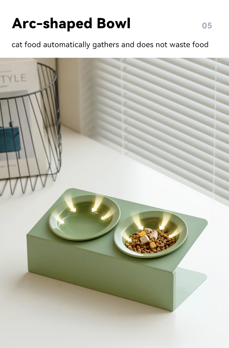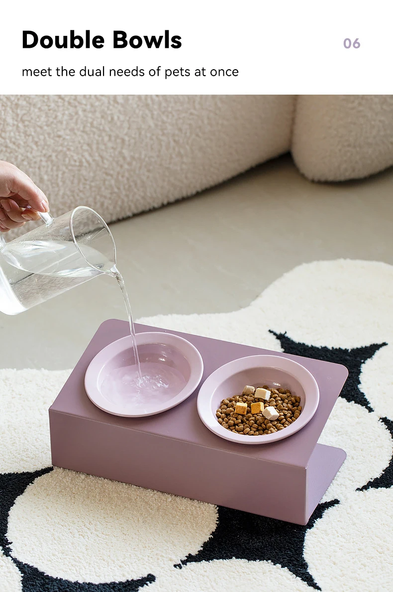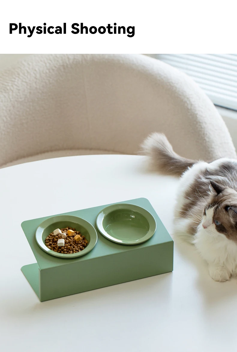 Double bol en céramique pour chat avec support en fer, bols surélevés pour animaux de compagnie, petits chiens, fournitures d'alimentation pour boire et manger |