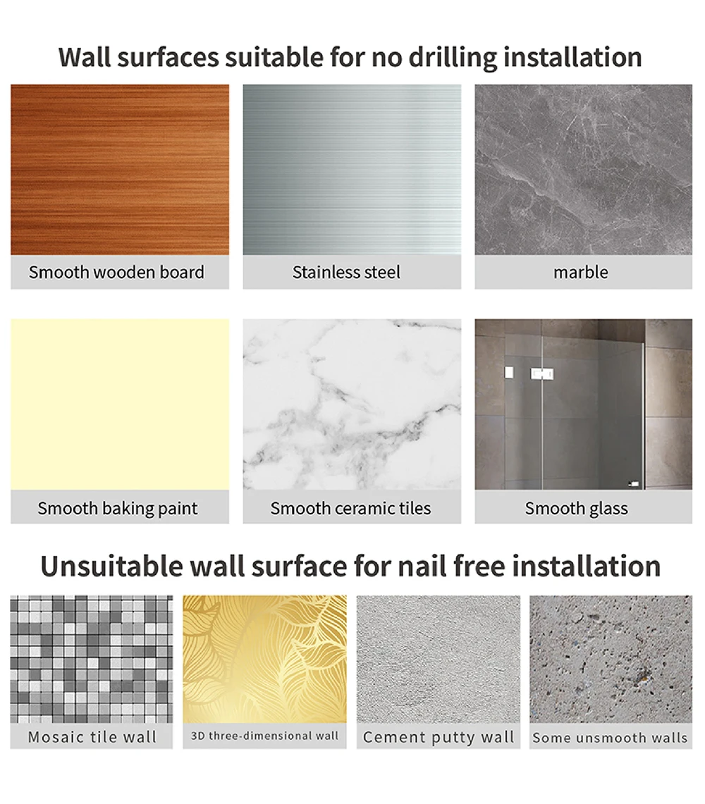Facile à installer et à économiser de l’espace: le distributeur de savon est livré avec des vis. Les trous sur le panneau arrière sont utilisés pour clouer le distributeur de shampooing pour la douche avec des vis, qui améliorent l’espace.