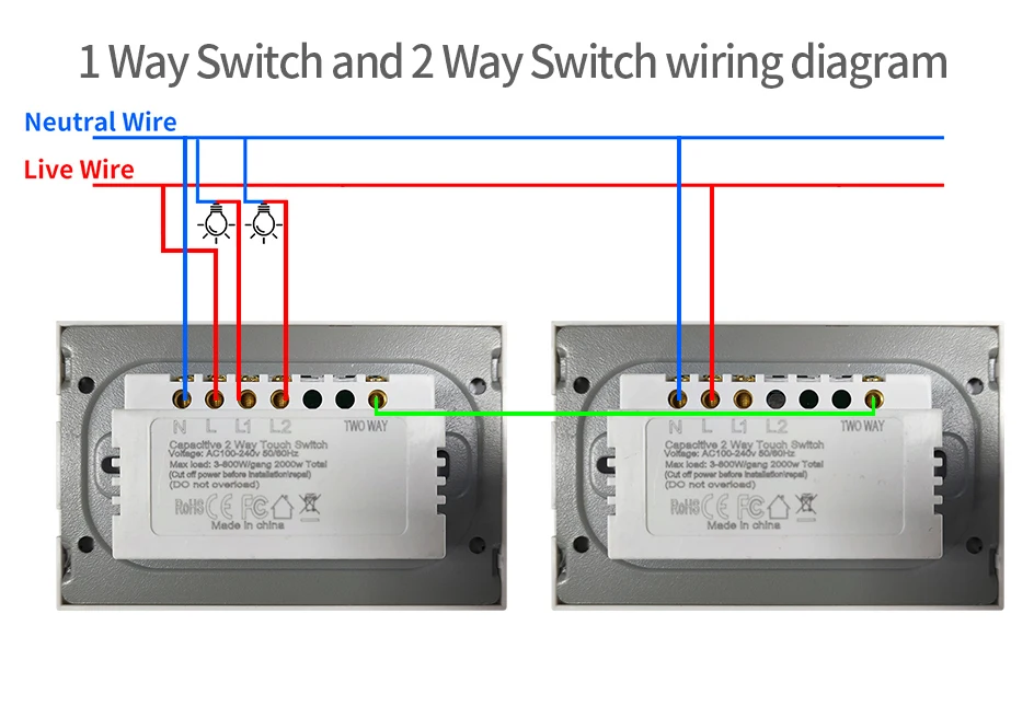 Nos interrupteurs à 2 voies n’ont pas besoin de les coupler, utilisez-les simplement directement après une bonne connexion, c’est très simple et pratique.