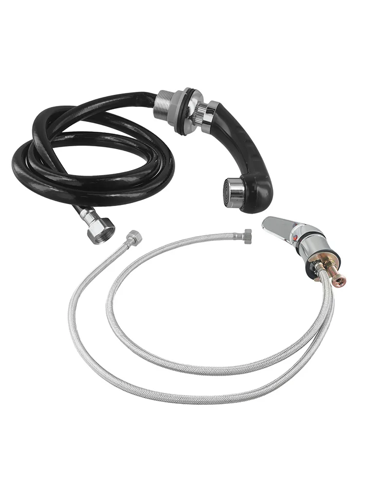 * Raccord complet en chrome à poignée unique avec douchette (mélangeur + douchette à main): Cette douchette à main pour évier mitigeur est livrée dans un design complet de douchette à poignée unique en chrome, ce qui la rend à la fois élégante et élégante.