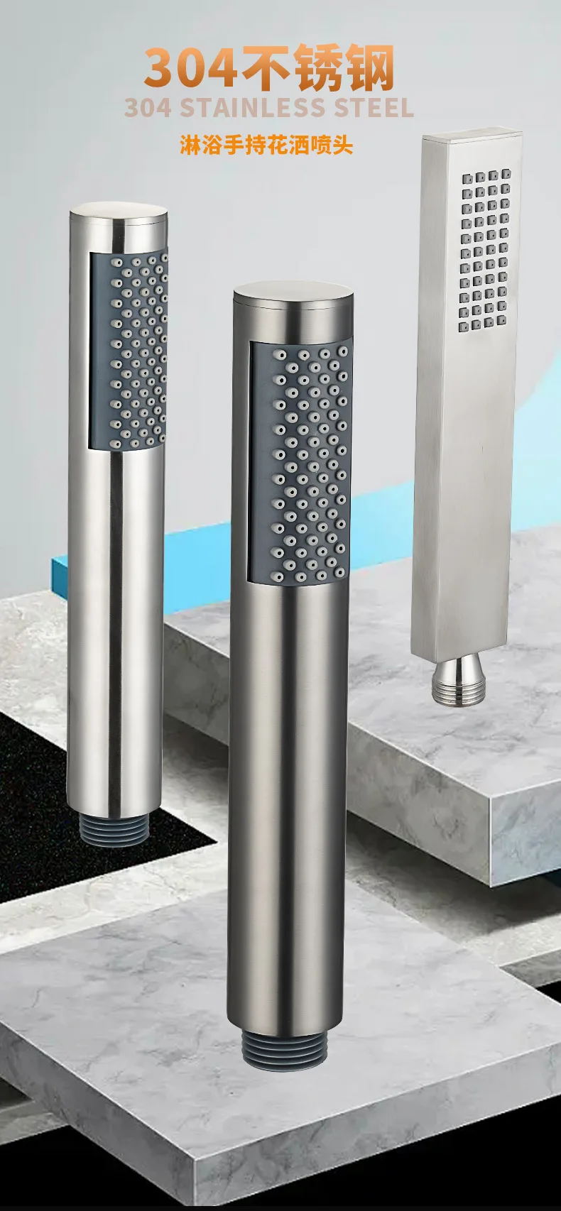 Douche à main carrée haute pression en acier inoxydable 304, pomme de douche, accessoires de salle de bains, douchette ronde pour salle de bains