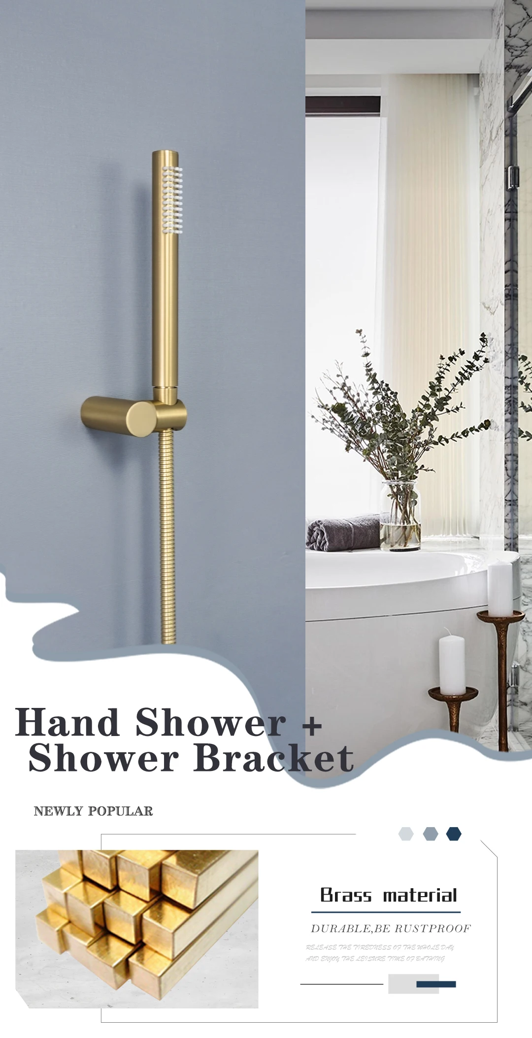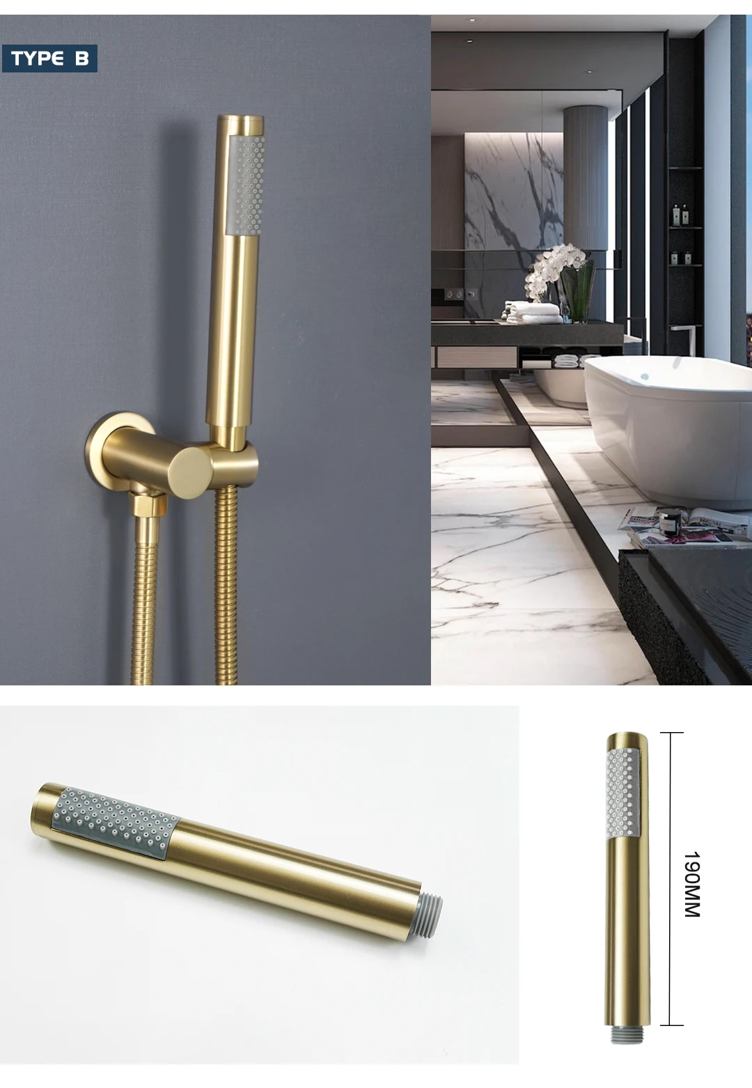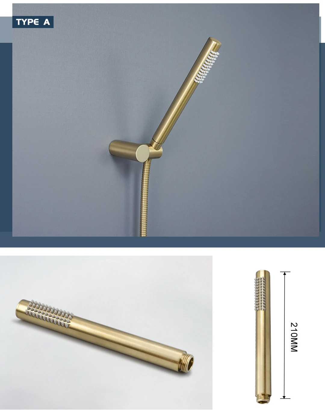 Douche à main en or brossé, poignée de salle de bains, économie d’eau, pomme de douche ronde et carrée, support mural, tuyau de douche, pulvérisateur à main en laiton
