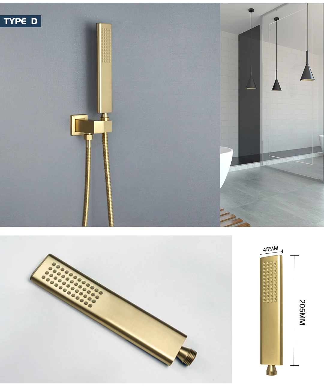 Douche à main en or brossé, salle de bains, pomme de douche à économie d’eau, support mural rond et carré, tuyau de douche, pulvérisateur à main en laiton