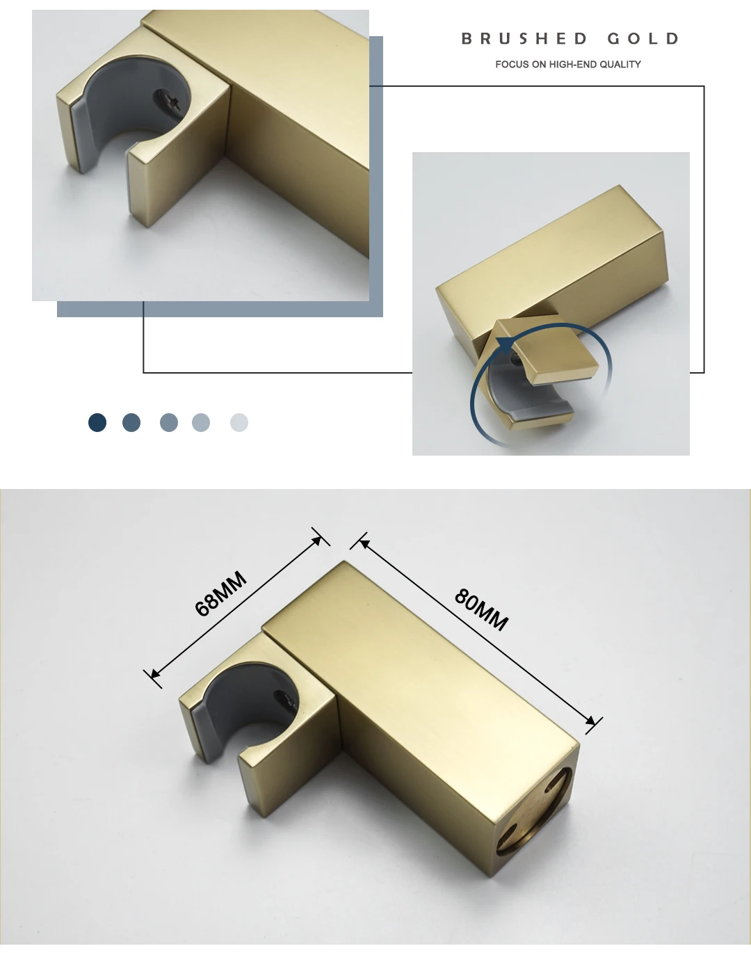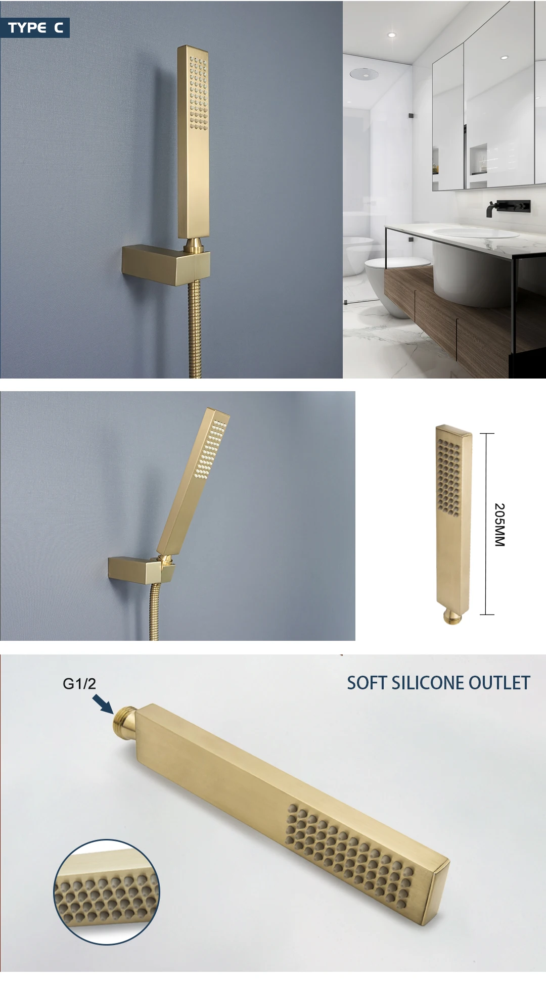 Douche à main en or brossé, salle de bains, pomme de douche à économie d'eau, support mural rond et carré, tuyau de douche, pulvérisateur à main de bain