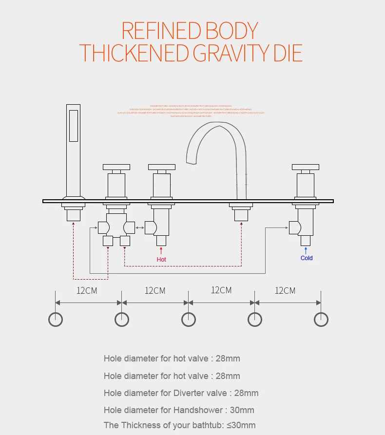 L’épaisseur de votre baignoire: ≤ 30mmRobinet de baignoire répandu Mélangeurs de douche de bain à 3 poignées avec douchette extractible