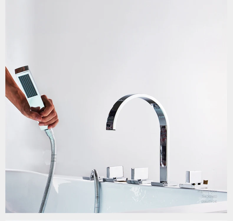 Robinet de baignoire répandu Mélangeurs de douche de bain à 3 poignées avec douchette extractible